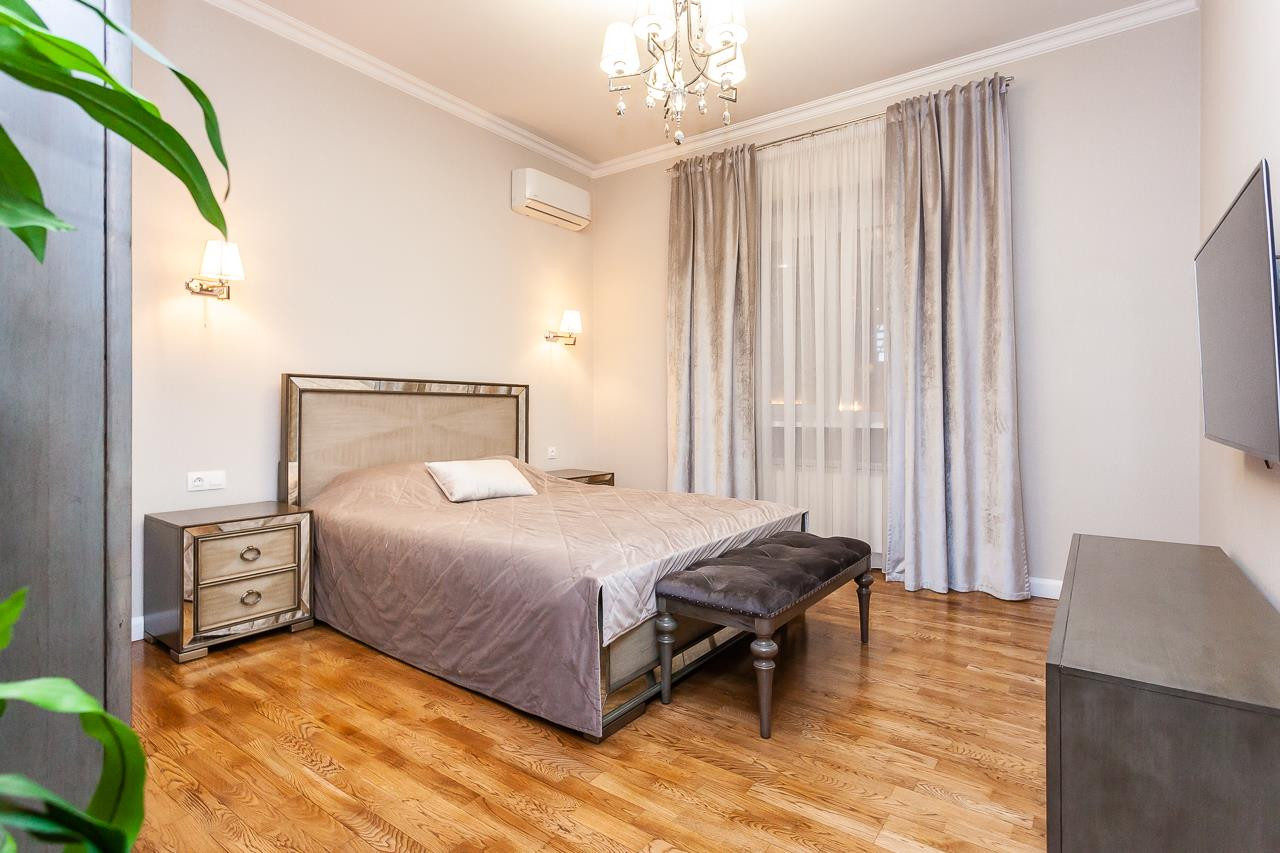- в каждой спальне стоят на окнах рулонные жалюзи, 2 ручные и 1 автоматические (управление на пульте);