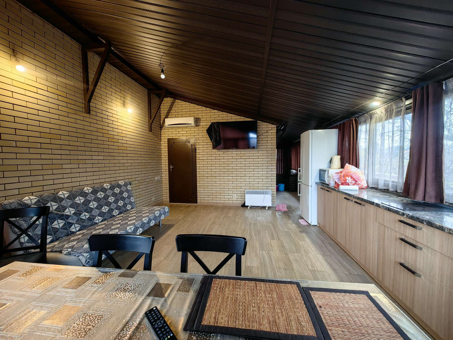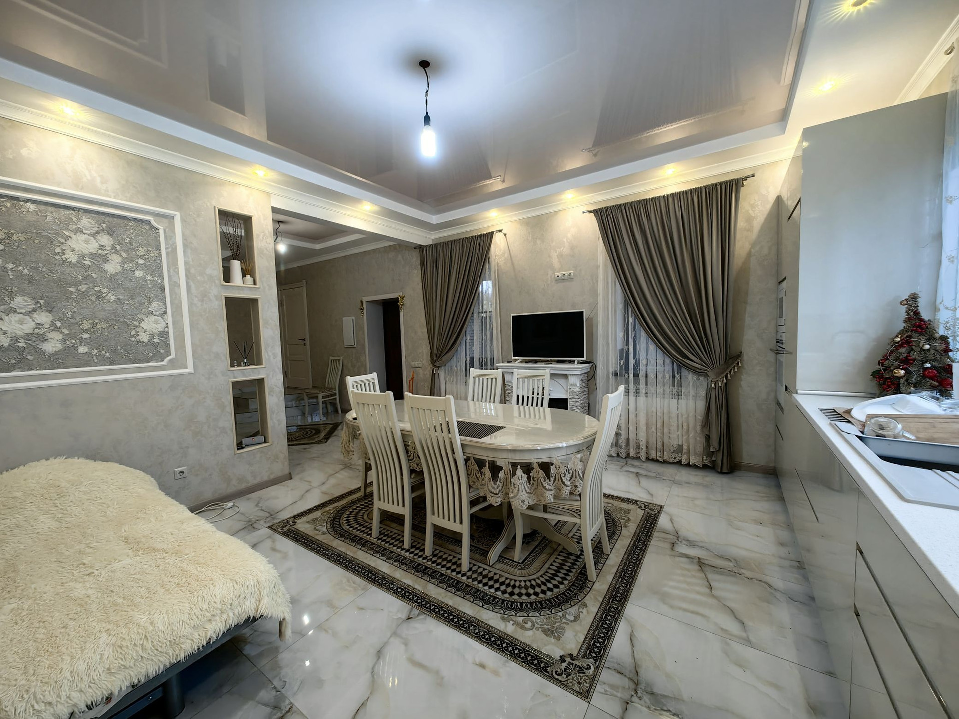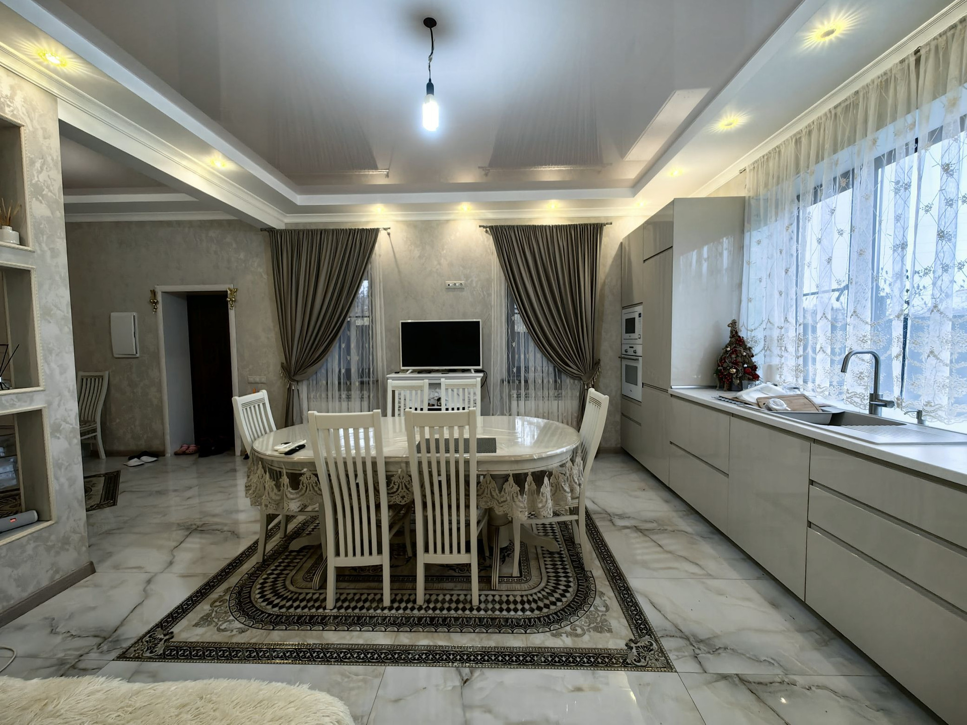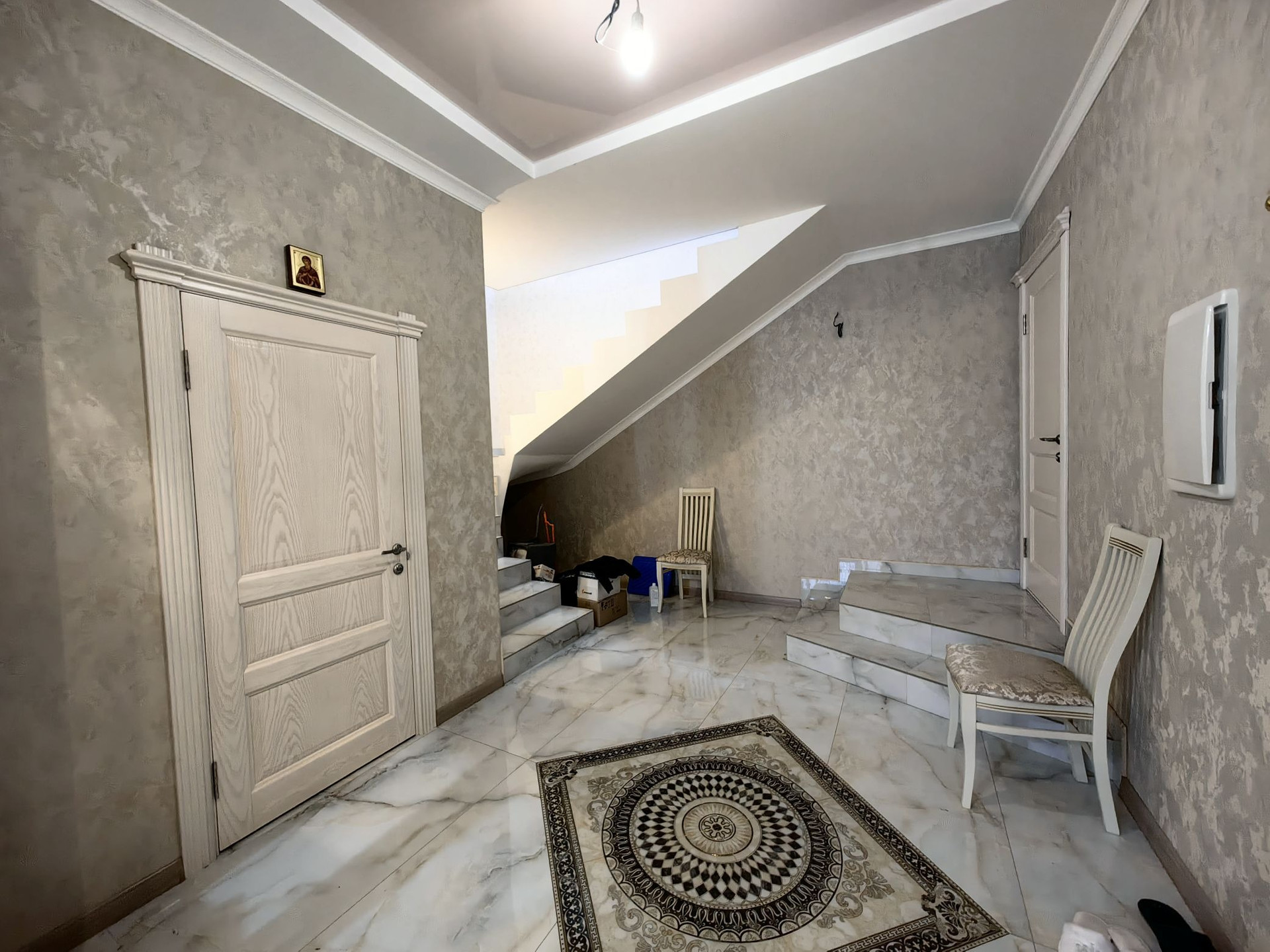 Дом полностью кирпичный, расположен на передней зоне участка, к новому дому примыкает старая постройка 1953г. в ней, 3 комнаты 2 кухни и санузел, постройку можно под реконструкцию можно снести, на задней зоне участка отделное современное, кирпичное строение, можно сделать баню, сейчас используется для хранения. Перед домом свободное место для парковки 4-5 машин плюс отдельно стоящий гараж. В доме свежий ремонт, все как на фото. На первом этаже большая кухня гостиная, санузел, и огромная гардеробная комната. На втором этаже - спальни, санузел и крытая терасса с кухней и балкон.