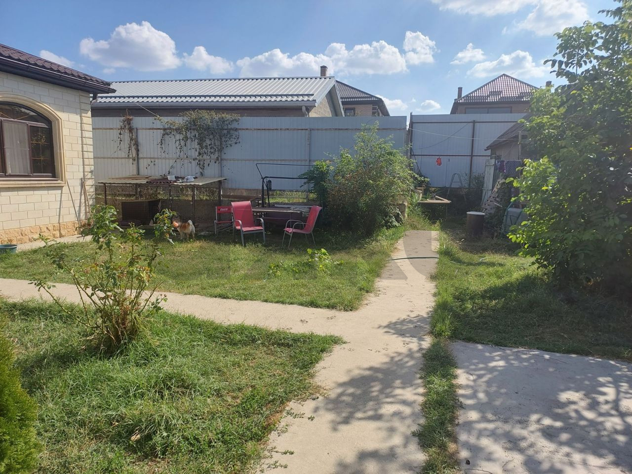 Дом расположен на земельном участке правильной формы 4,3 сотки. Фасад большой - 20 метров. Двор ухоженный, озеленённый.