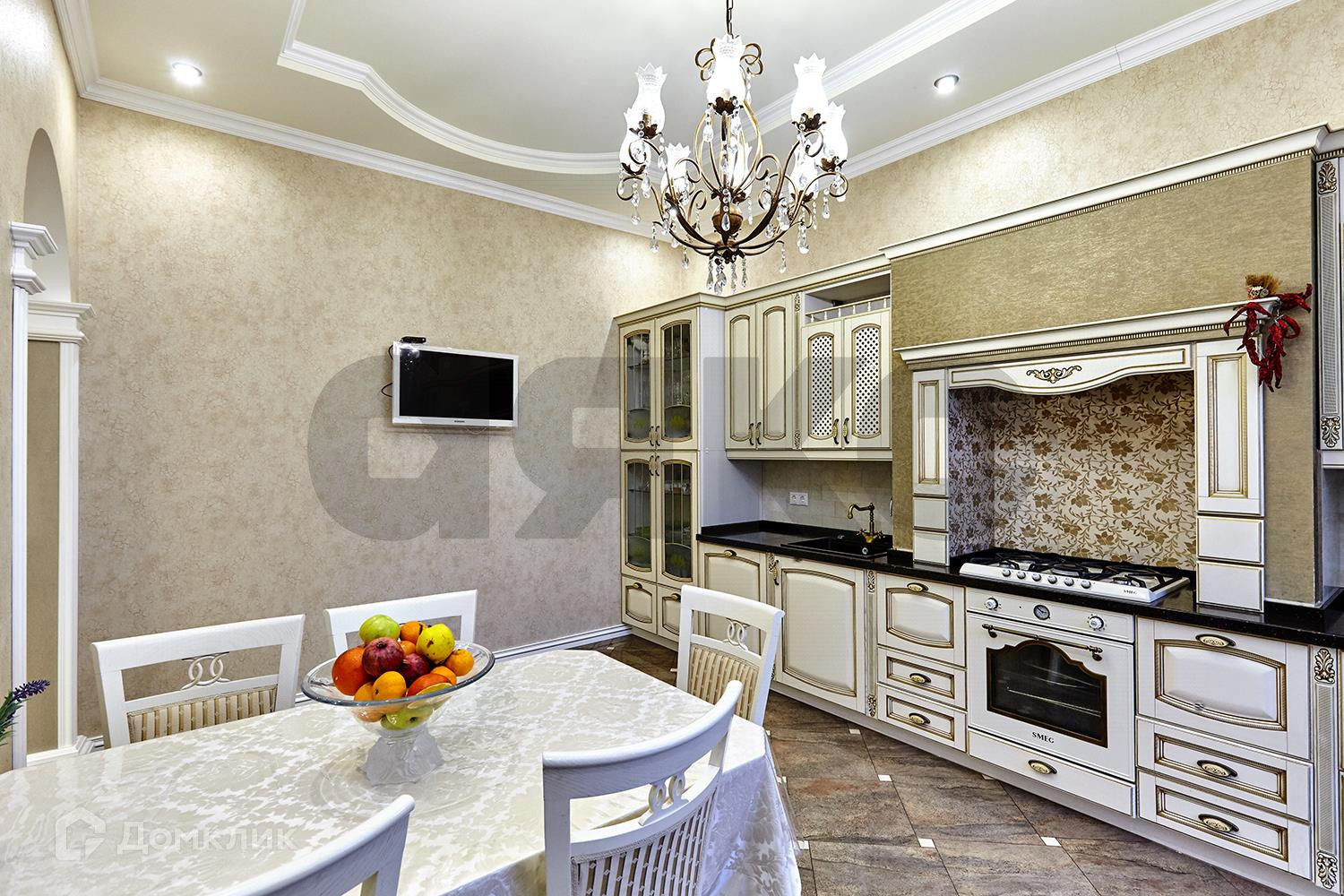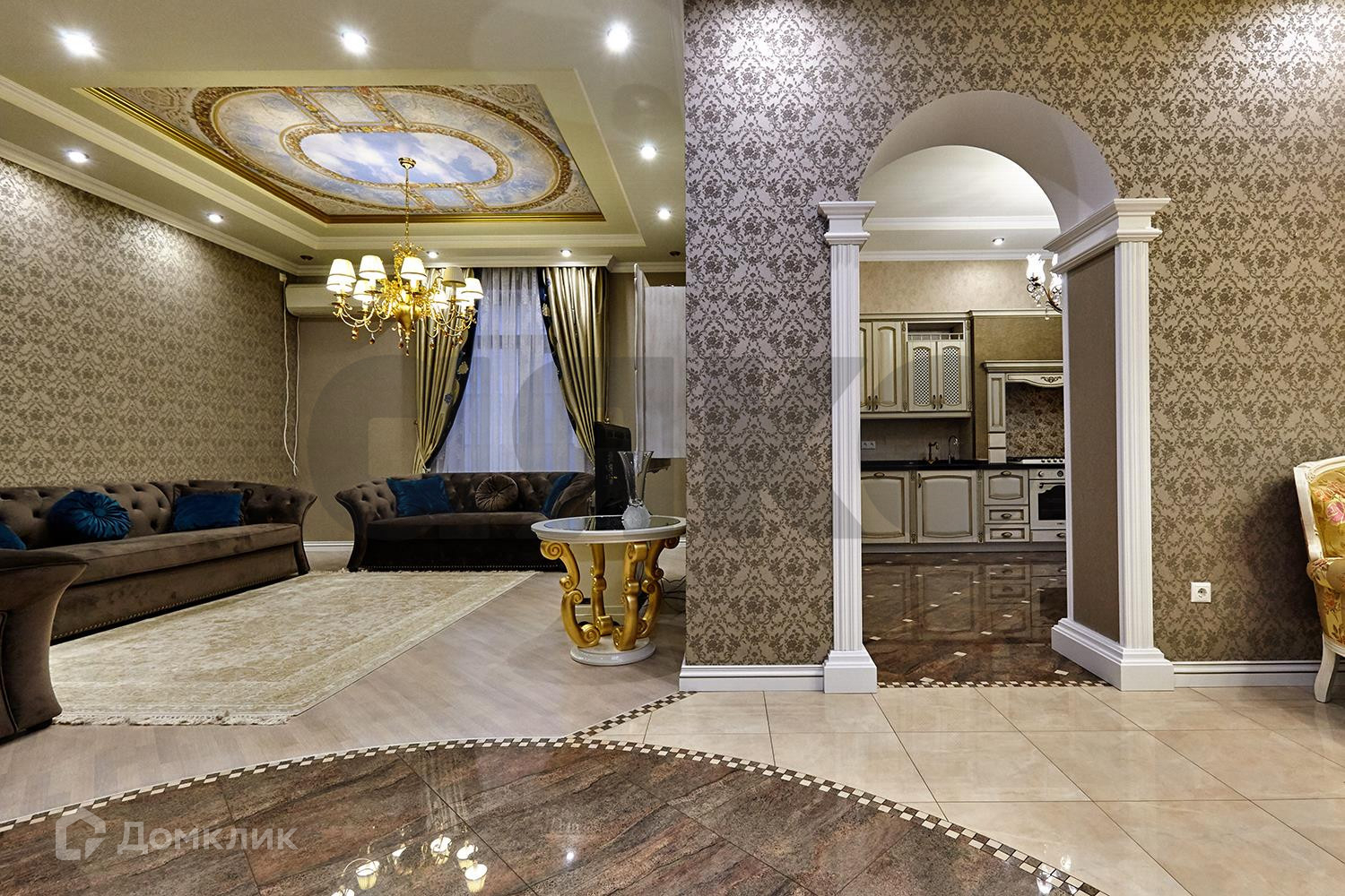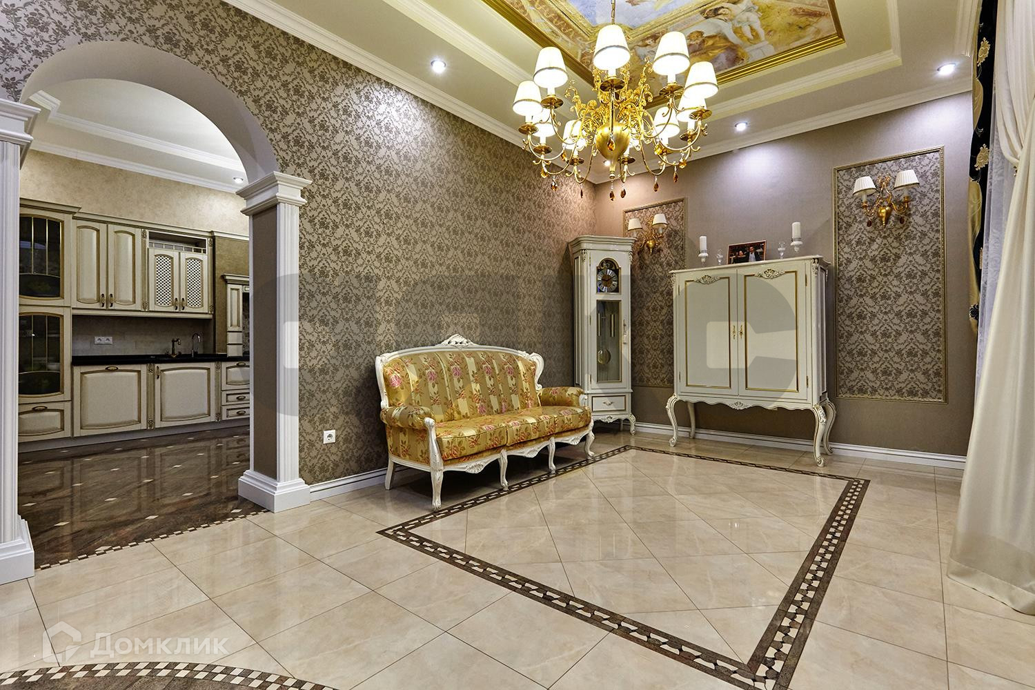 Выполнен дорогостоящий ремонт: шелковые обои на стенах, итальянская плитка на полу, мраморные подоконники, кованная лестница и люстры - всё это позволяет наслаждаться изысканностью каждый день.
