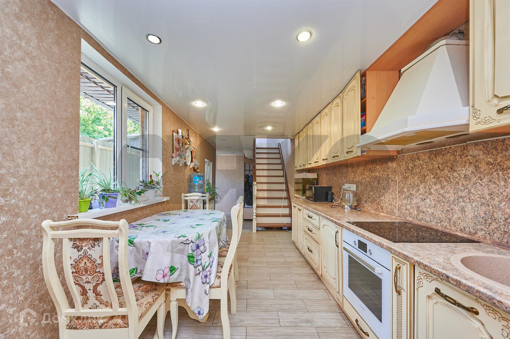 Жилой дом 90 квм, з/уч 1.57сот, два этажа, четыре комнаты, большая кухня-гостиная со встроенной бытовой техникой, гардеробная, два с/у; на втором этаже две комнаты, на заднем дворе свой земельный участок, где можно расположить зону барбекю.