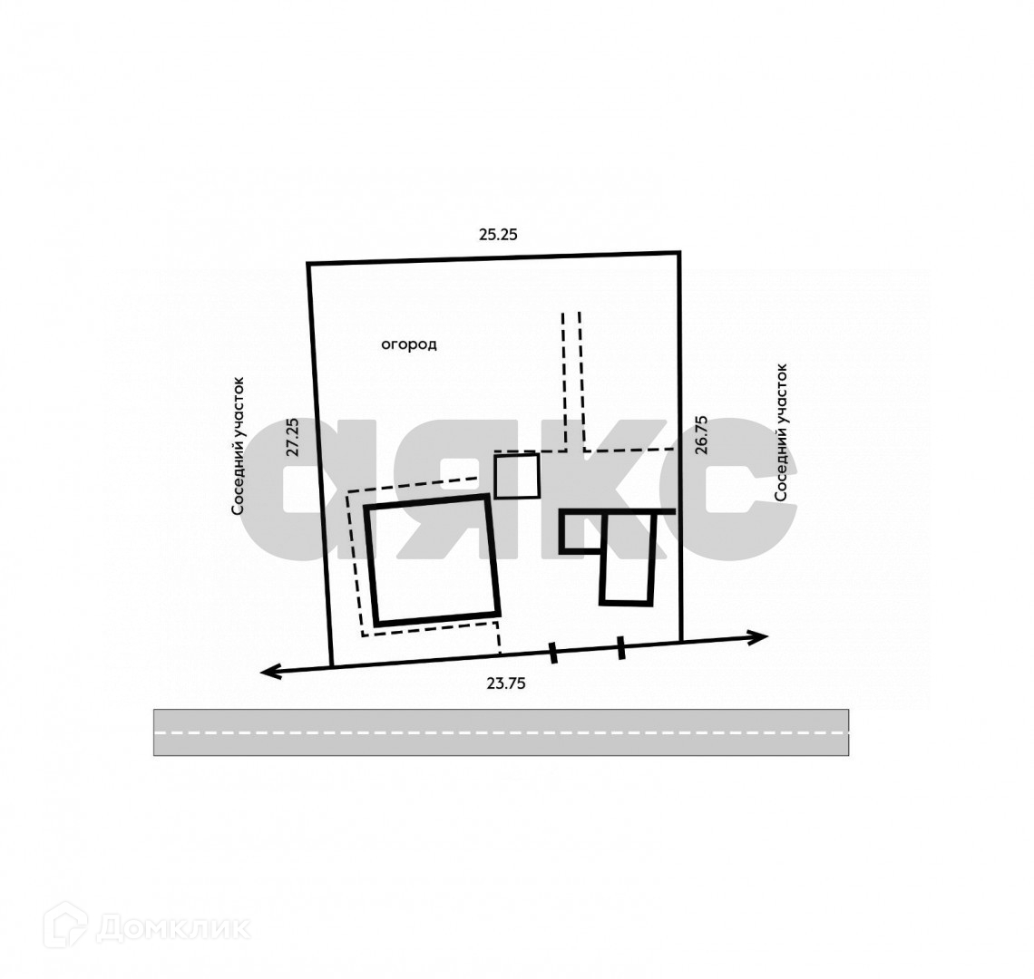 На участке, закрытая беседка, плодовые деревья, просторный двор. Преимуществом является фасадная часть - 23,75 на 27,75 метра!
