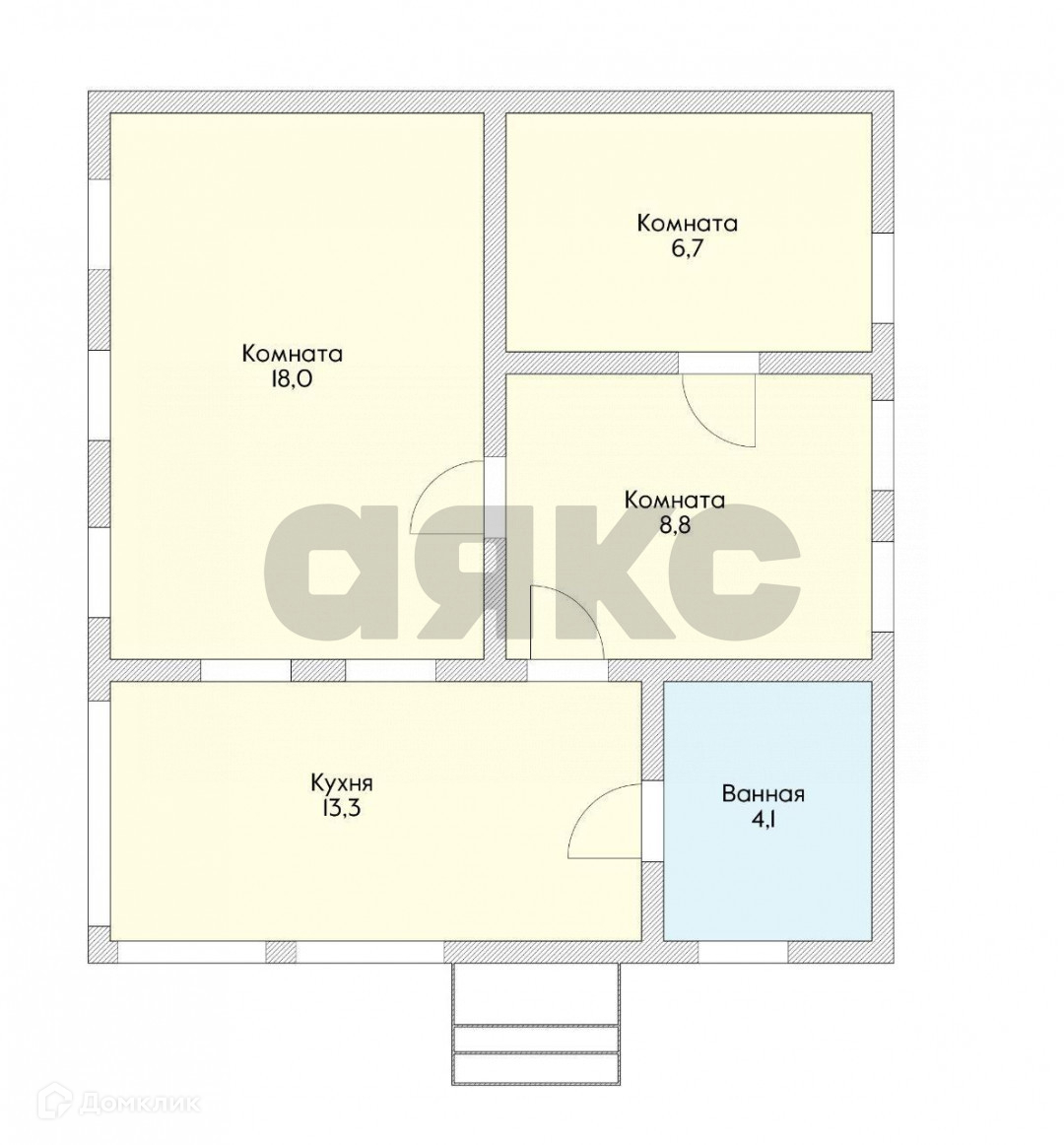 В доме 3 комнаты, просторная кухня 13 метров и сан. узел.