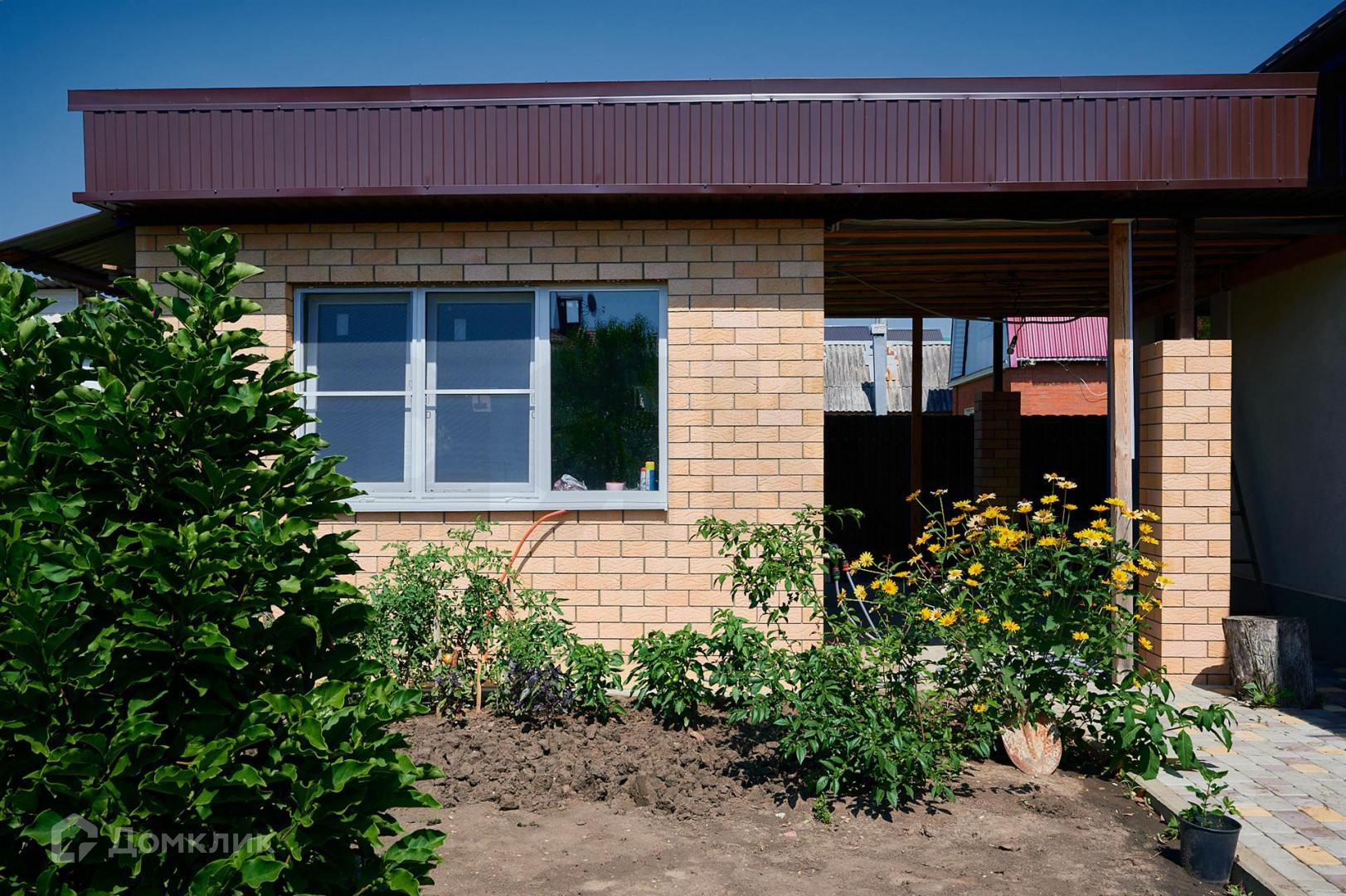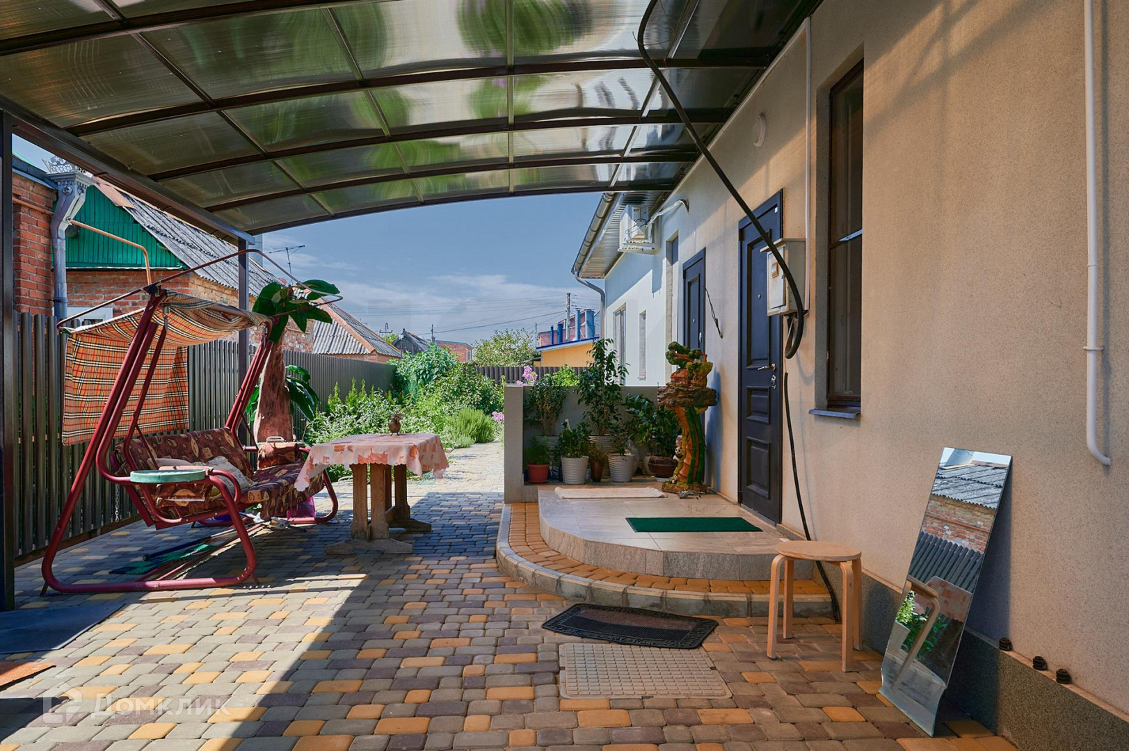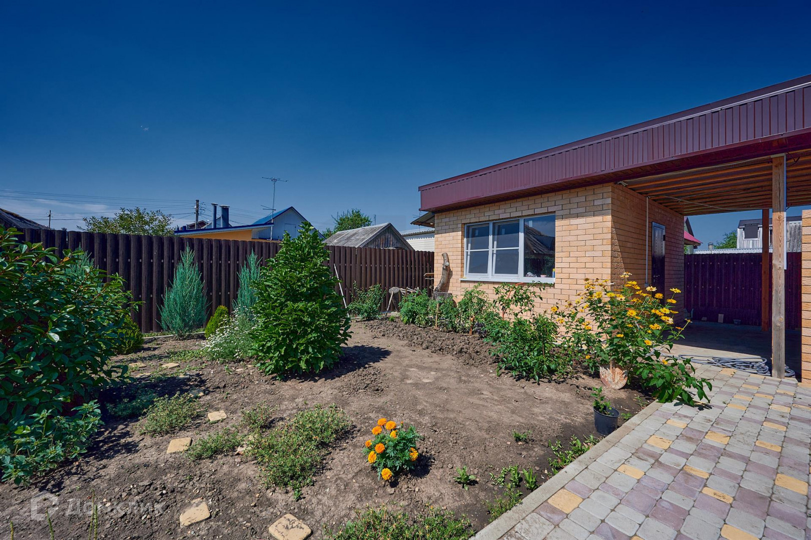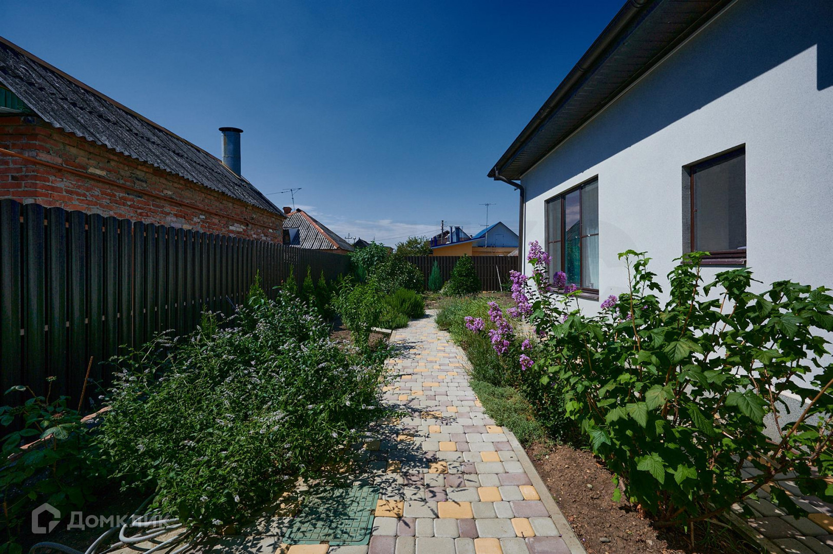 Двор в плитке на заднем дворе построена летняя кухня с кладовкой и санузлом, летняя кухня объедена с домом навесом где можно организовать летнею террасу.
