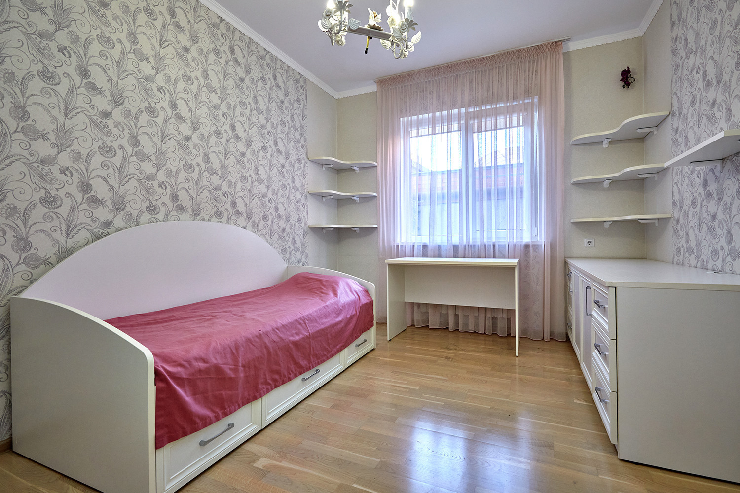 На первом этаже дома расположены 3 спальни, кабинет, 2 сан узла, гардеробная и большая кухня гостиная. С задней стороны дома вход в котельную и зона барбекю.