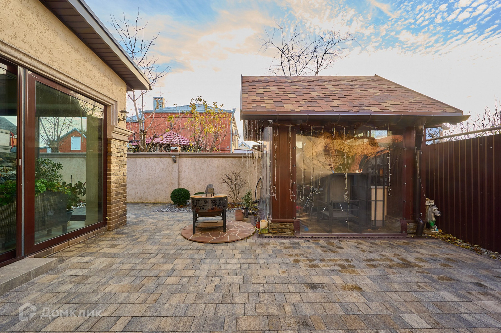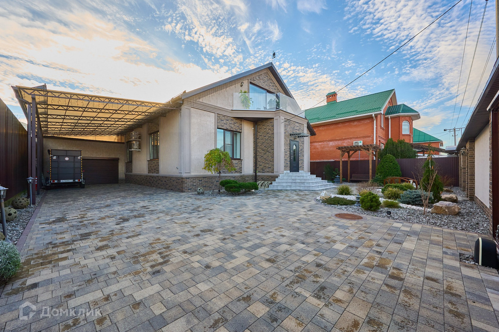 На участке выполнен ландшафтный дизайн с системой автополива.