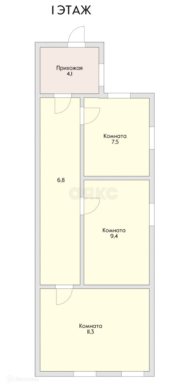 Первый дом саман-кирпич площадью 41.5 м2 3 изолированных комнаты. Свежий ремонт! По документам жилой.