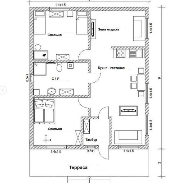 Общая площадь 140 м2