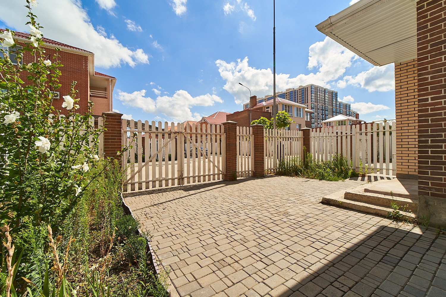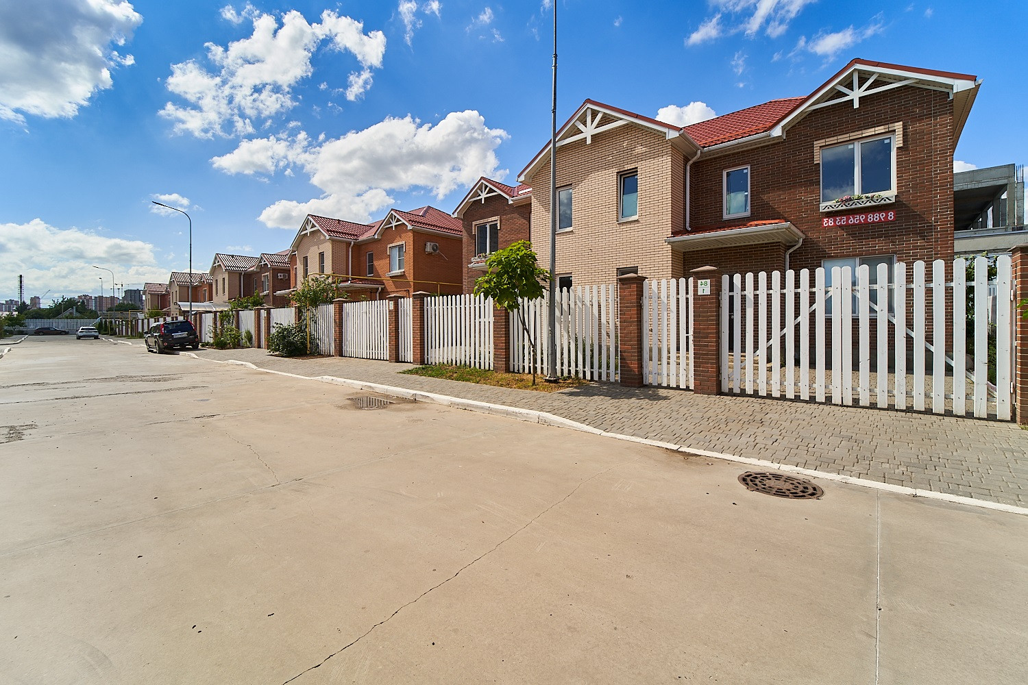 Закрытая территория коттеджного комплекса, автоматический шлагбаум, видеонаблюдение, своя детская площадка, прилегающая парковая зона с велодорожкой, спортивными и детскими площадками, лавочками и фонарями, летний фонтан, два бассейна на территории. Рядом новая школа, муниципальный детский садик, крупный торговый центр. В пешей доступности вся необходимая инфраструктура, хорошая транспортная развязка, остановки общественного транспорта, несколько маршрутов. Расположение позволяет без пробок добраться до Черного моря за полтора два часа.