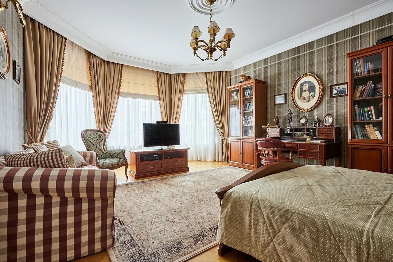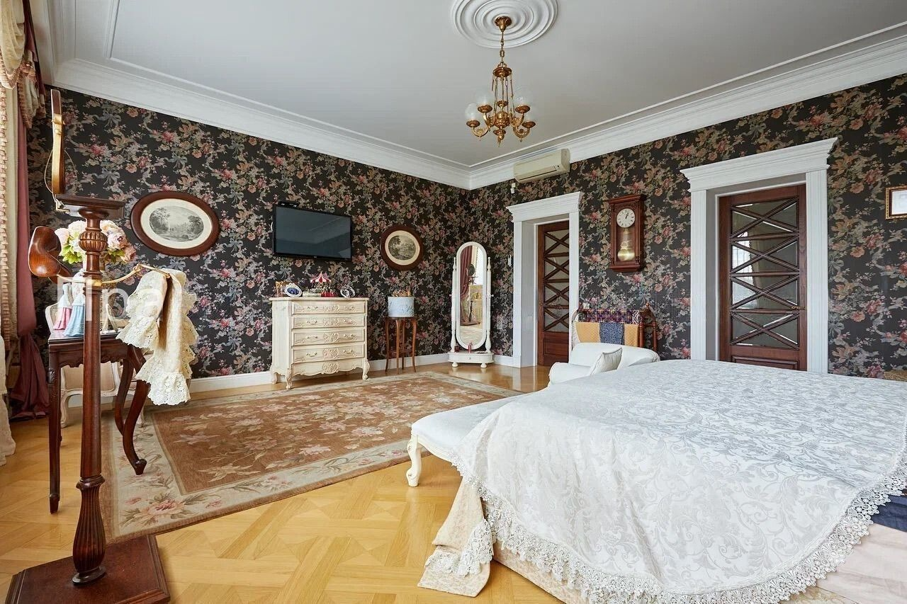 В доме 4 комнаты: 3 спальных комнаты, гостиная, 2 гардеробных,