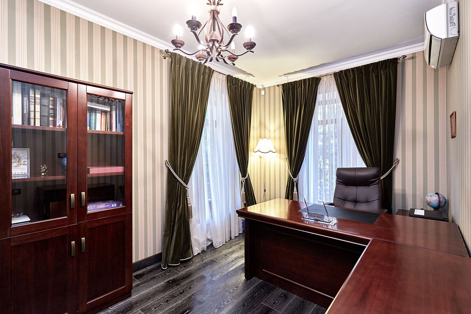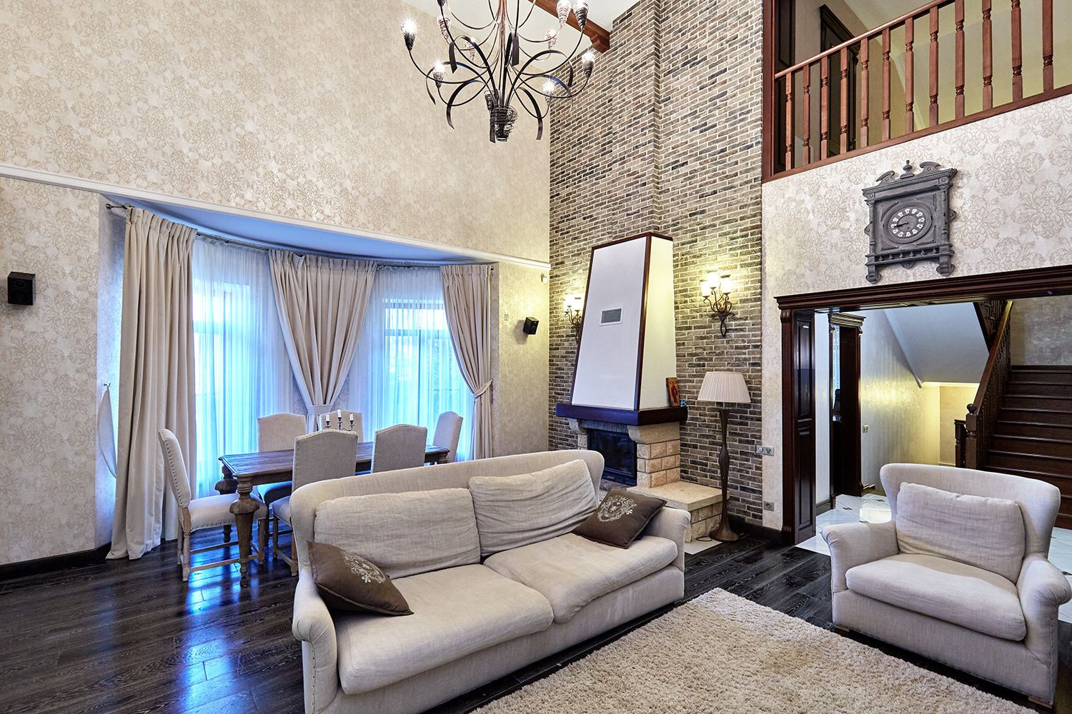 1 этаж: большой холл, кухня со встроенной эксклюзивной итальянской кухней из натурального массива, выход на зимнюю отапливаемую террасу 50 м2, зал с натуральным камином. Высота потолка в зале 6 метров. Крытый гараж с автоматическими воротами. Имеется отдельный кабинет, с/у с качественной дорогой сантехникой.