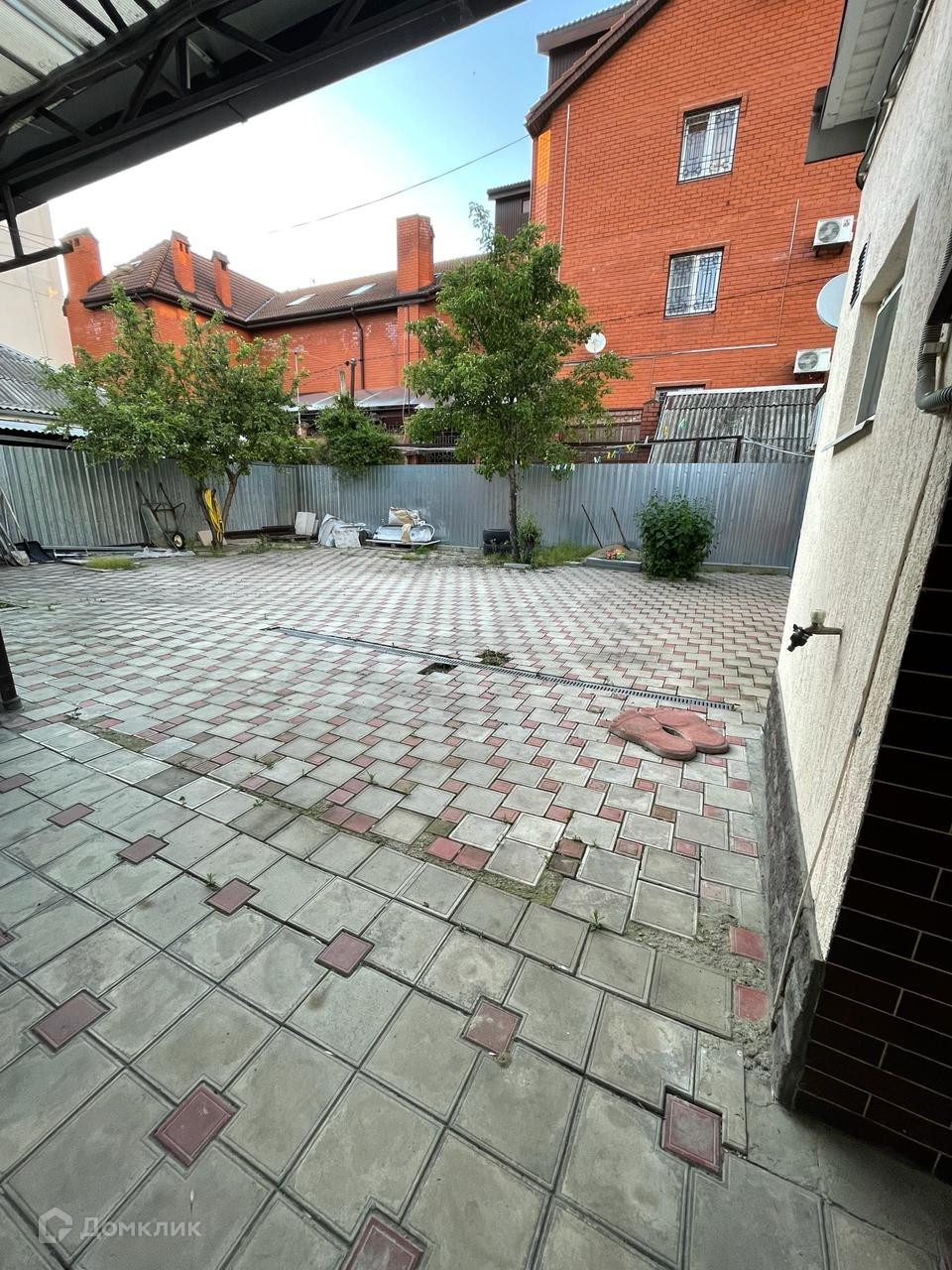 Земельный участок 3.2 сотки безо всяких совладельцев. Двор облагорожен, уложена плитка. Крытый.