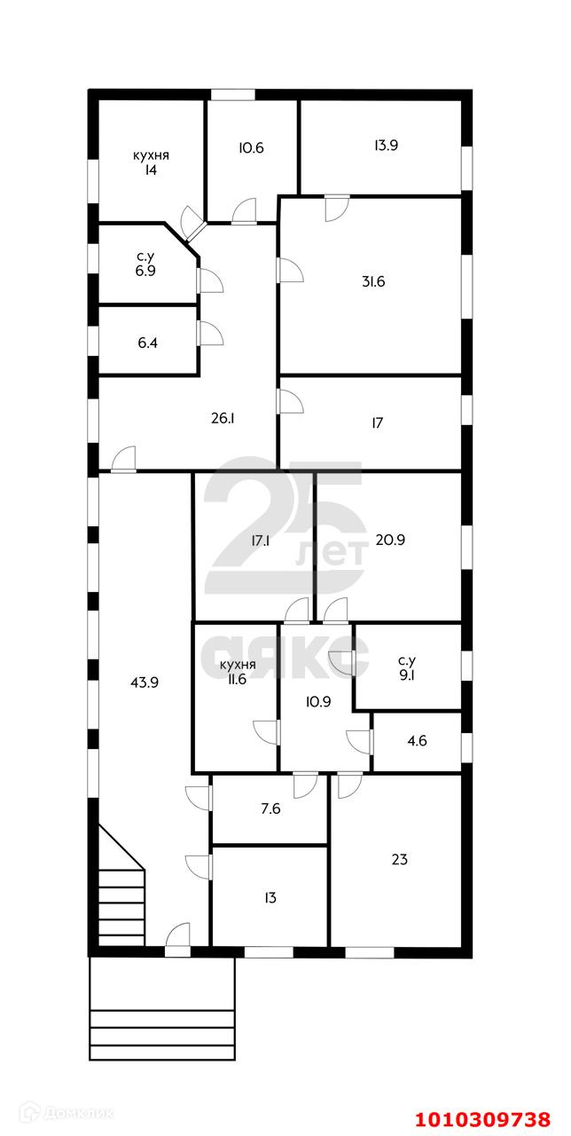Площадь дома 818 кв. м. Хорошая планировка: 11 больших комнат, 4 кухни, 5 санузлов, 4 прачечных.