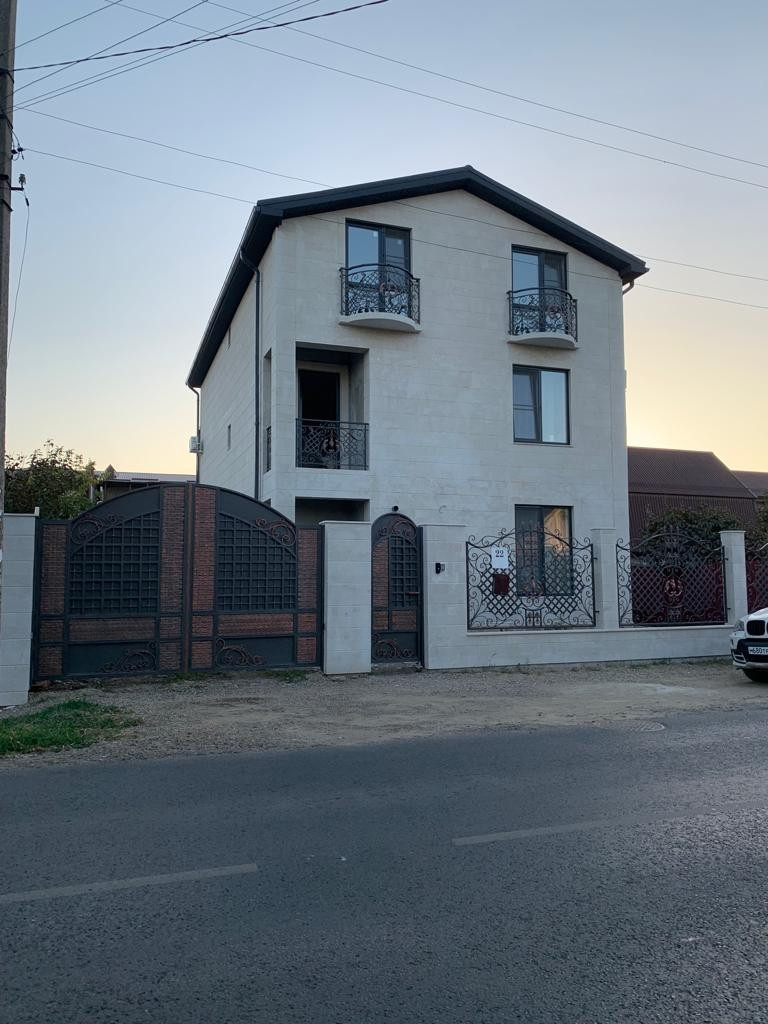Продается новый 3-х этажный дом в Пашковке.Дом построен в 2022 году,строили для себя,не экономили ,с учетом всех норм и правил. Дом облицован дагенстанским камнем. Все коммуникации центральные(газ,вода,свет,канализация,телефон, интернет). Установлен газовый котел,бойлер косвенного нагрева с системой рециркуляции. На первом этаже и во всех сан.узлах теплые полы. Установленны сплит системы.  Дорога асфальтированна недавно. В шаговой доступности Магнит и остановка трамвая.Фасад 15.5 метров. Участок поднят на уровень дороги. Так же на участке имеется навес с дровницей,и погреб. Парковка перед домом на дороге,так же во дворе,на несколько машин.На первом этаже две кухни, кладовпя,зал с выходом на терассу и во двор, сан узел для гостей,спальня с сан узлом.На втором этаже 3 спальни с балконами,2 сан узла,гардеробная. На 3 этаже 3 спальни,2 санузла. Можно использовать под гостиницу или гостевой дом. Во все комнаты проведена телефонизация. Есть так же камеры видеонаблюдения (6mp) на фасад,во двор и на парковку. Так же сделанны все коммуникации под гостиницу. Автоматические распашные кованные ворота,домофон,кодонаборник,возможность открывания двери с телефона и с чипа.