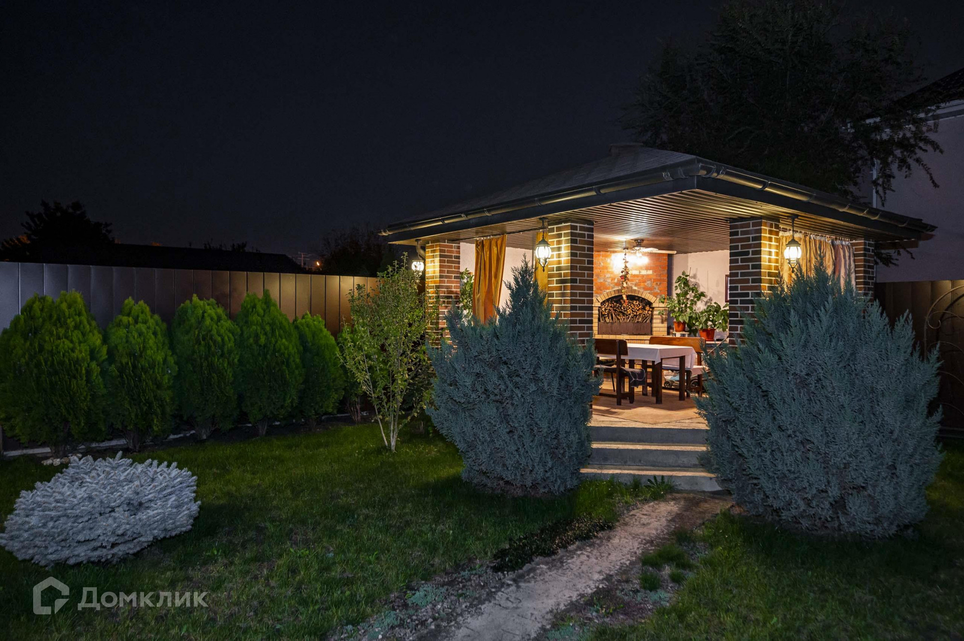 Во дворе ландшафтный дизайн, беседка для отдыха с зоной барбекю. Рядом живут статусные соседи. К дому ведёт асфальтированная широкая дорога.