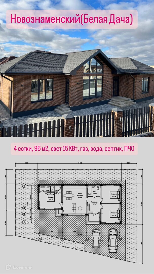 Продаю одноэтажный дом 100 м2 в п.Новознаменский на 4 сотках земли + 2 сотки придомовой земли.