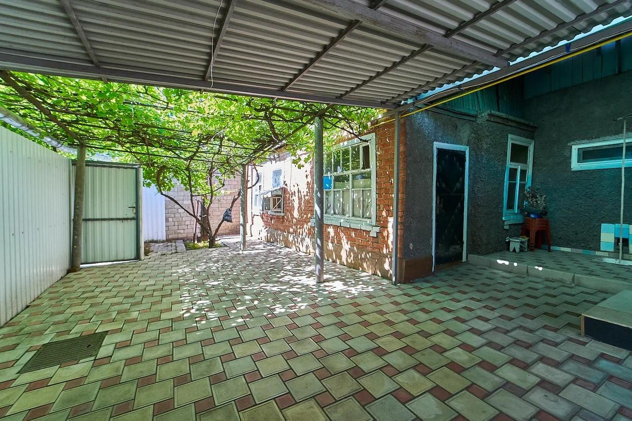 Большой ровный двор закрытый от всех соседей, с собственным входом, выложенный плиткой, тень создает виноград и имеется навес, а так же есть своя зона барбекю и участок земли.