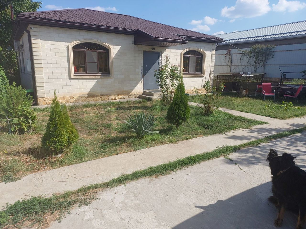 Дом расположен на земельном участке правильной формы 4,3 сотки. Фасад большой - 20 метров. Двор ухоженный, озеленённый.