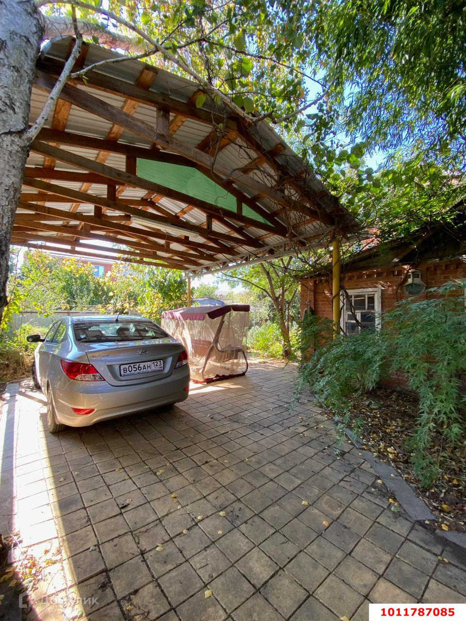 Во дворе большой основательный металлический навес для двух машин.