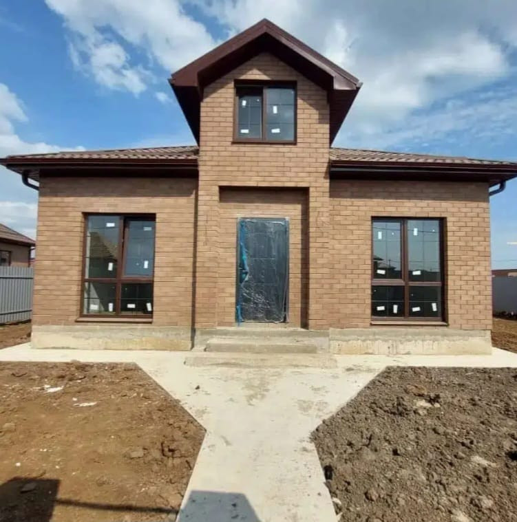 Дом из газ блока, облицован керамическим кирпичом(Славянский)