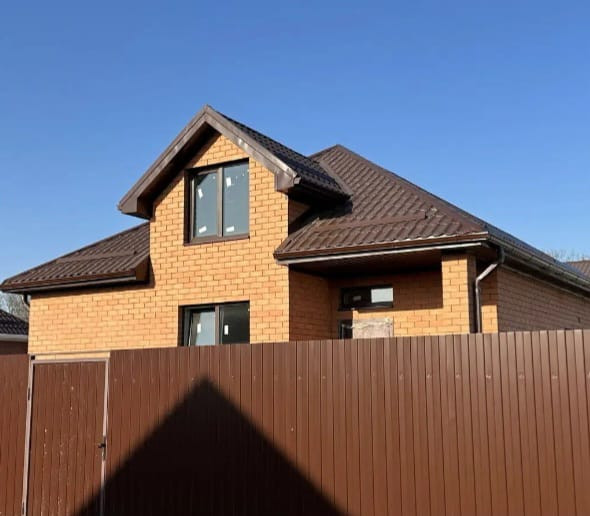 Дом из газ блока, облицован керамическим кирпичом(Славянский)