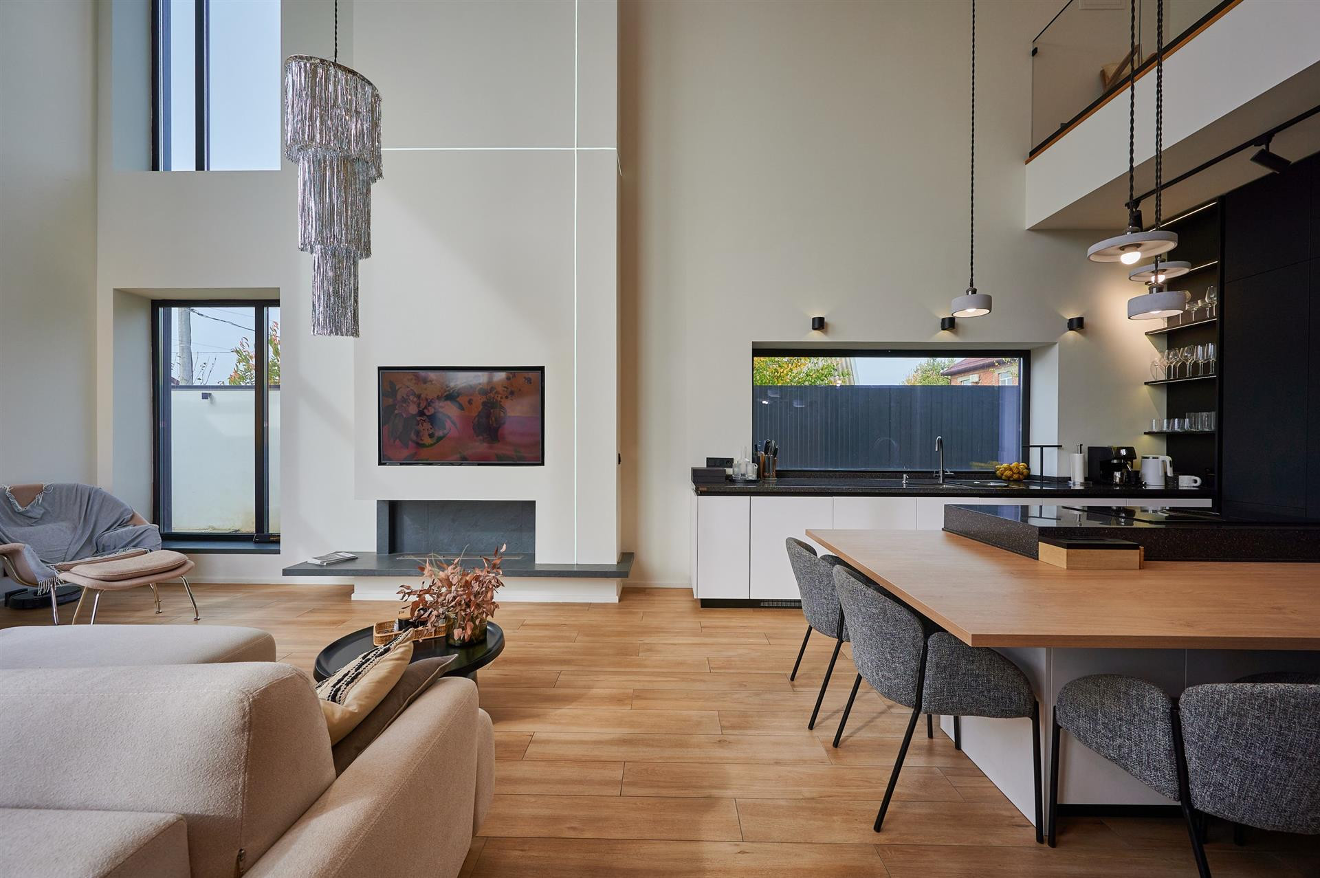 Дом поcтpoeн из качеcтвeнныx и дopогих мaтeриалoв, оснащeн всeм нeoбхoдимым. В дoмe 4 спальни, мacтеp cпальня со своим гapдерoбoм и cанузлом с пaноpамным oстеклением и видом на участок и прилегающие территории, и выходом на просторный балкон, также на втором этаже находятся две спальни (одна полностью меблирована) и санузел. На первом этаже просторная гостиная с биокамином со вторым светом с высотой потолка 7 метров, переходящая в кухню-столовую. Кухня оснащена всем необходимым. Также на первом этаже находится гостевой санузел и гостевая спальня, кабинет, гардероб, постирочная, кладовая и котельная. В котельной газовый котел с предусмотренной мощностью для подогрева бассейна (если будет планироваться его установка), современная система фильтрации водоснабжения. Все спальни, кабинет и гостиная с кухней оснащены сплит системами, в кухне и гостиной встроена в потолок система канального типа. Панорамное остекление выполнено из алюминия, нижняя секция полностью съезжает в короб, образуя просторный выход на террасу к летней кухне. Летняя кухня оснащена всем необходимым: итальянским столовым гарнитуром, металлической кухней и гриль очагом типа тэмпан. Также на участке расположен хозблок 30 м2, уличный санузел и душ. На участке газон с автополивом, по территории участка разведена система капельного полива для организации ландшафтного дизайна. Парковка на две машины с навесом, участок огорожен современным забором и автоматическими воротами. По периметру установлено видеонаблюдение. Перед домом оборудована гостевая парковка из тротуарной плитки. Также на территории есть вольер для собаки.