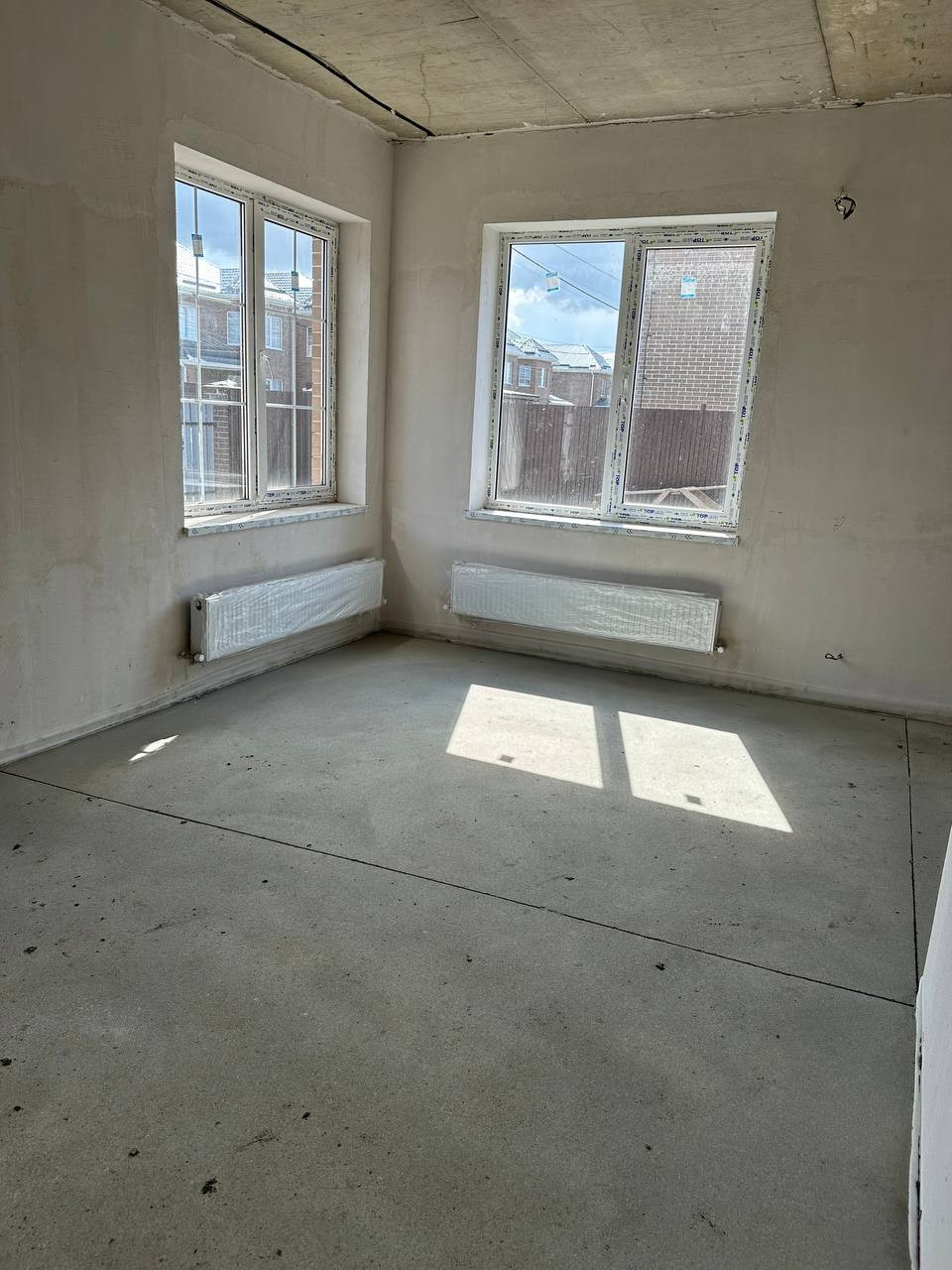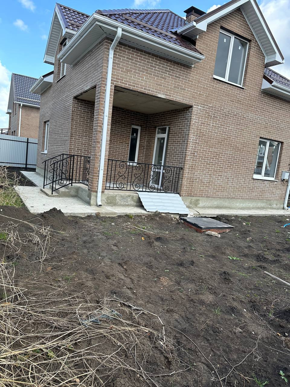 Дом сдается в предчистовой отделке( вытянуты стены (штукатурка, шпатлевка), стяжка пола, полипропиленовые трубы, развод сантехники, радиаторы),теплый пол, разводка электрики. Территория огорожена кирпичным забором, установлены ворота, калитка. Газ по меже. Септик дренажный 9 кв.м. Скважина 38 метров.