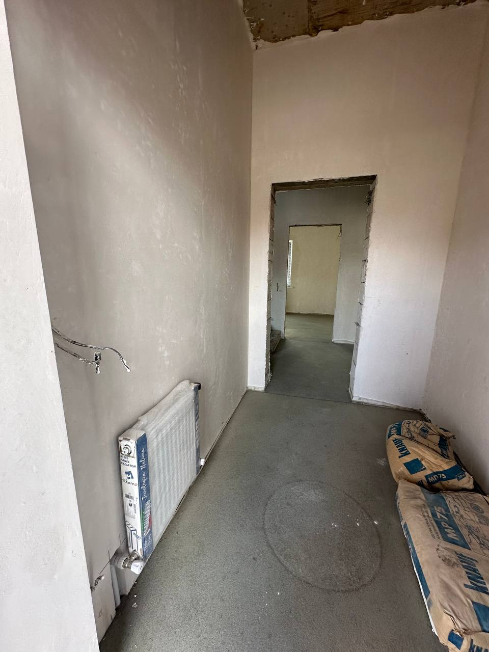 Дом сдается в предчистовой отделке( вытянуты стены (штукатурка, шпатлевка), стяжка пола, полипропиленовые трубы, развод сантехники, радиаторы),теплый пол, разводка электрики.
