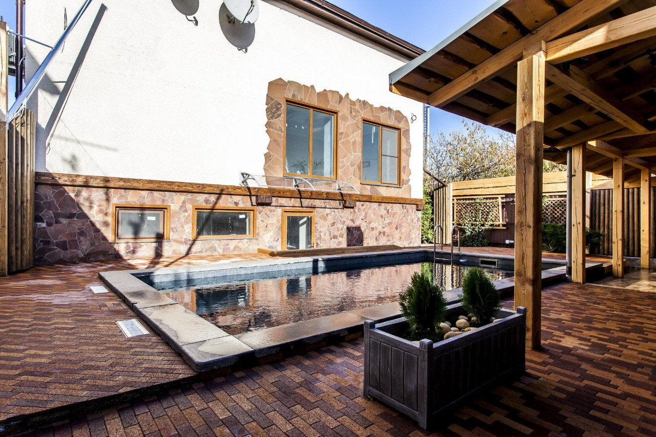 Особенности участка: Зона барбекю, летняя веранда, с/у, бассейн с подогревом, видеонаблюдение по всему периметру дома.