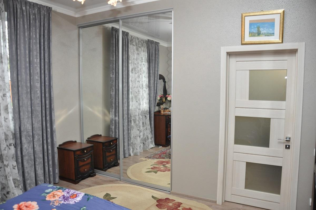 В доме 3 спальни, просторная кухня-гостиная, 2 санузла. В каждой комнате своя гардеробная. Большая гардеробная при входе. Просторная уютная терраса! Сделан качественный свежий ремонт, остаётся мебель и техника.