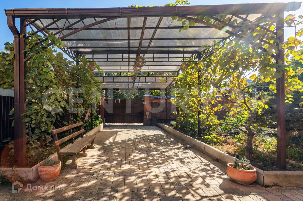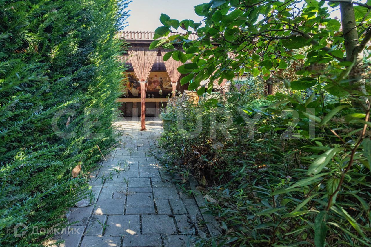 Есть гараж. Двор выложен плиткой. На территории участка плодовые деревья и ландшафтные растения.