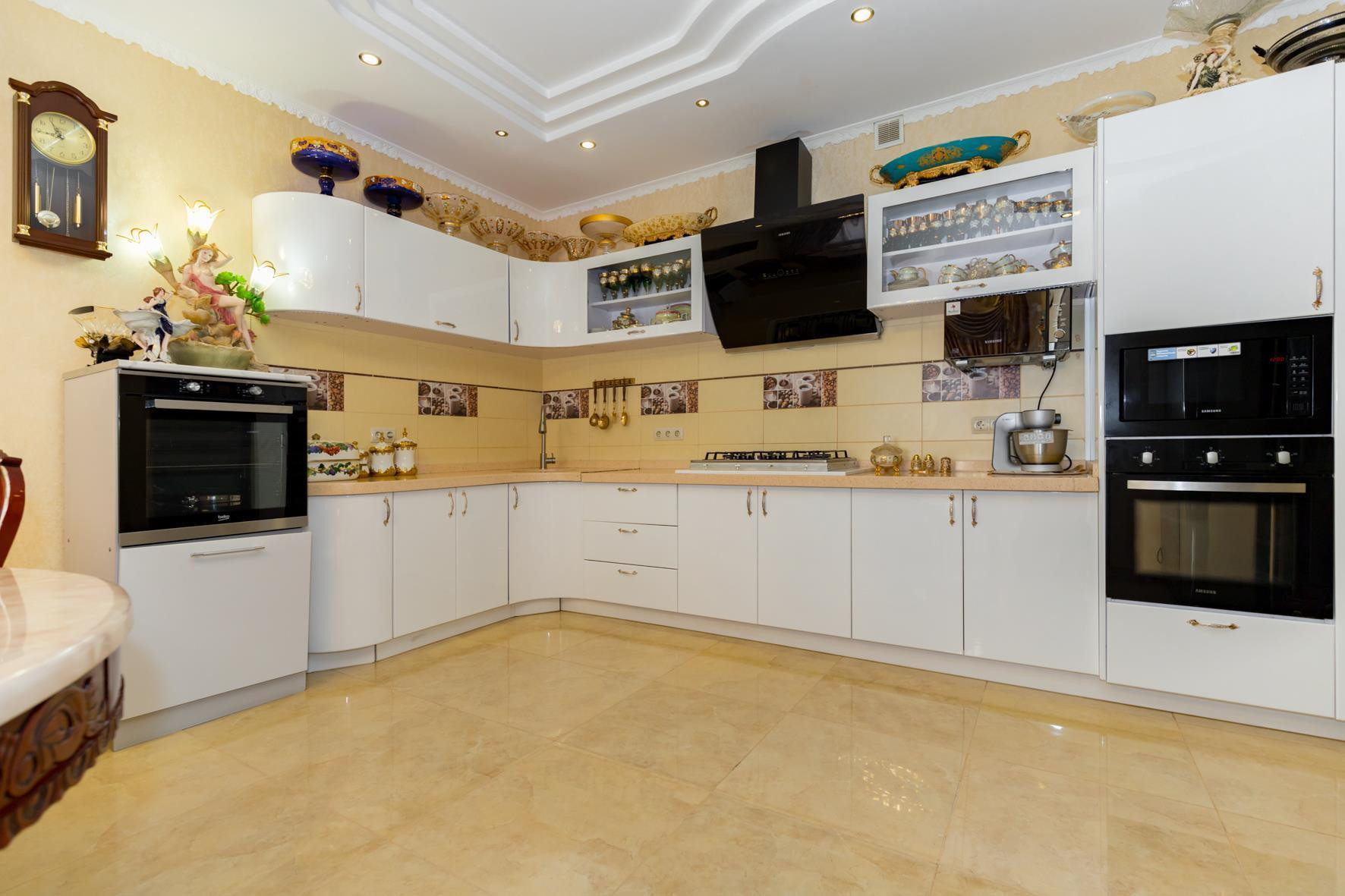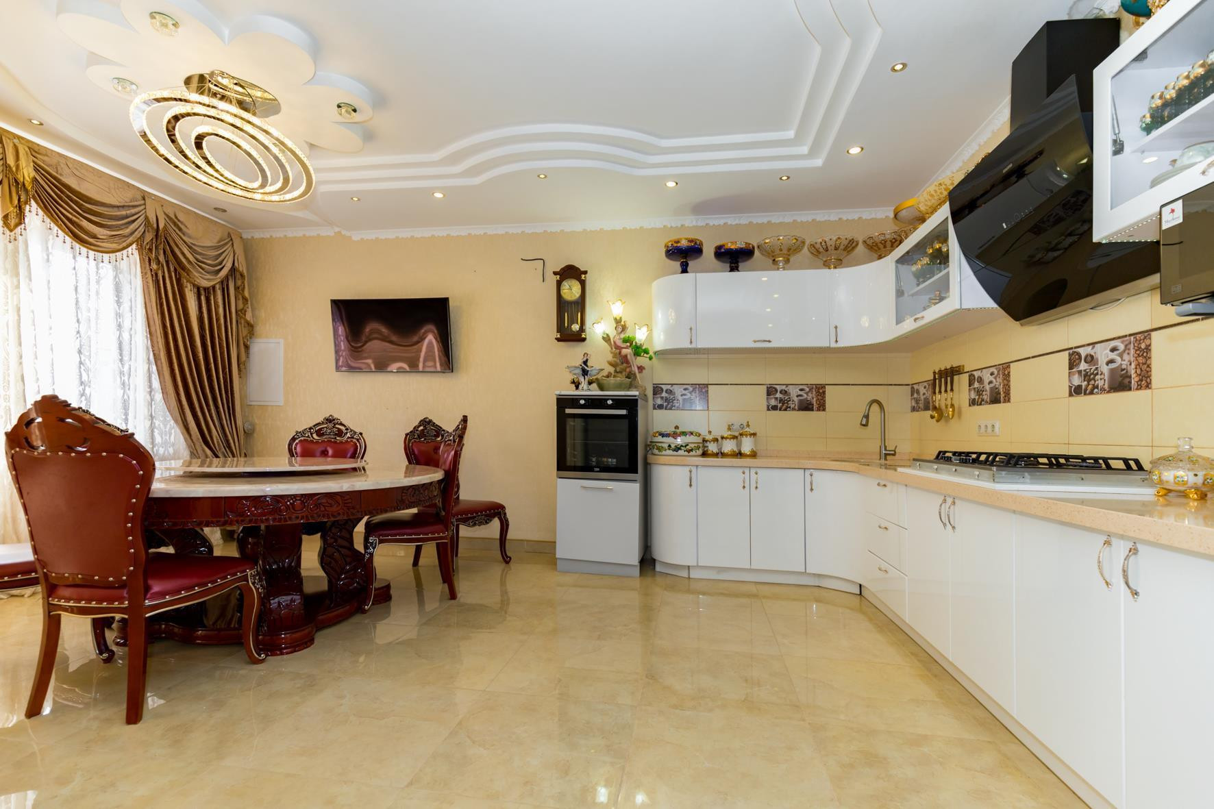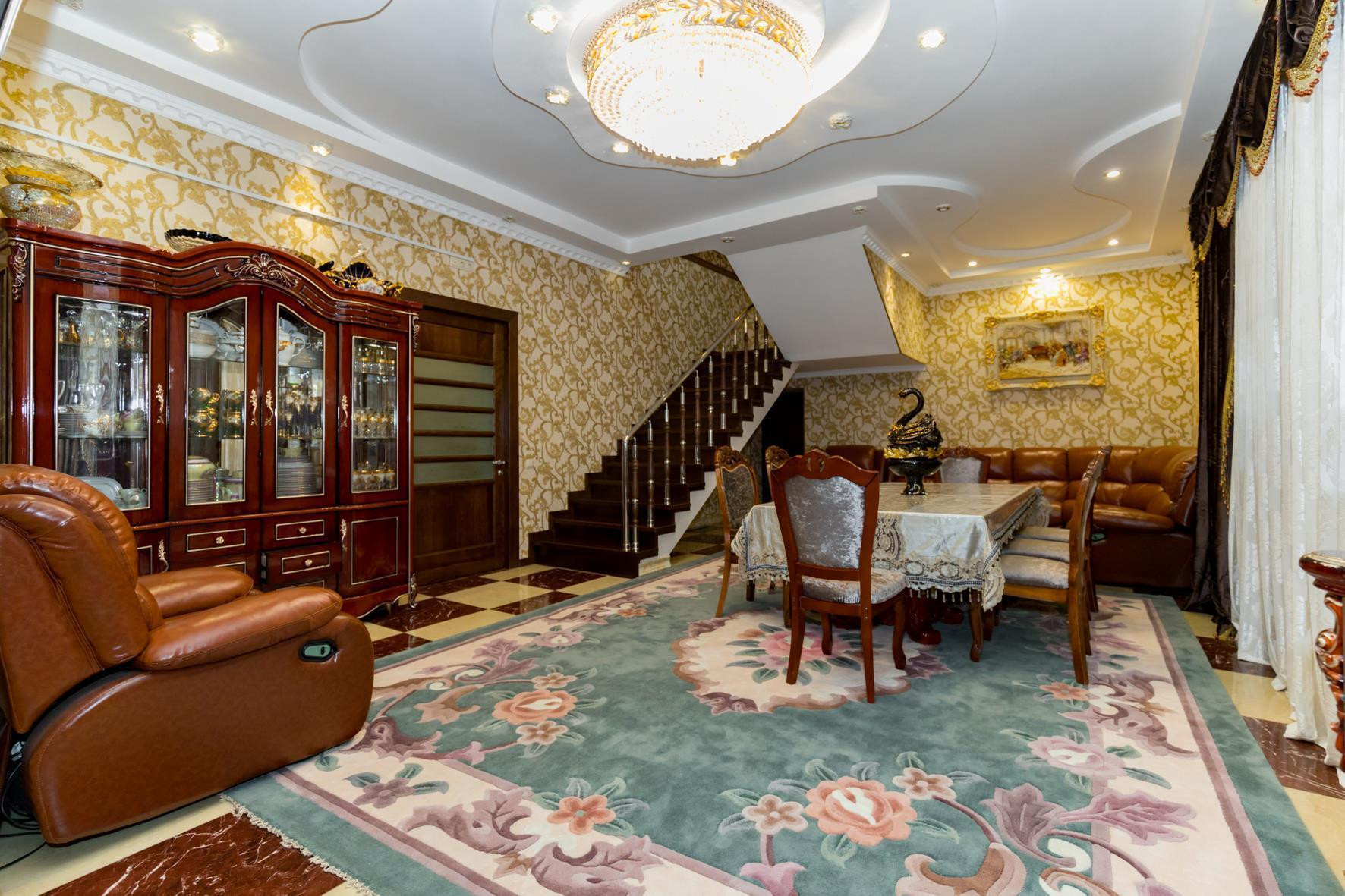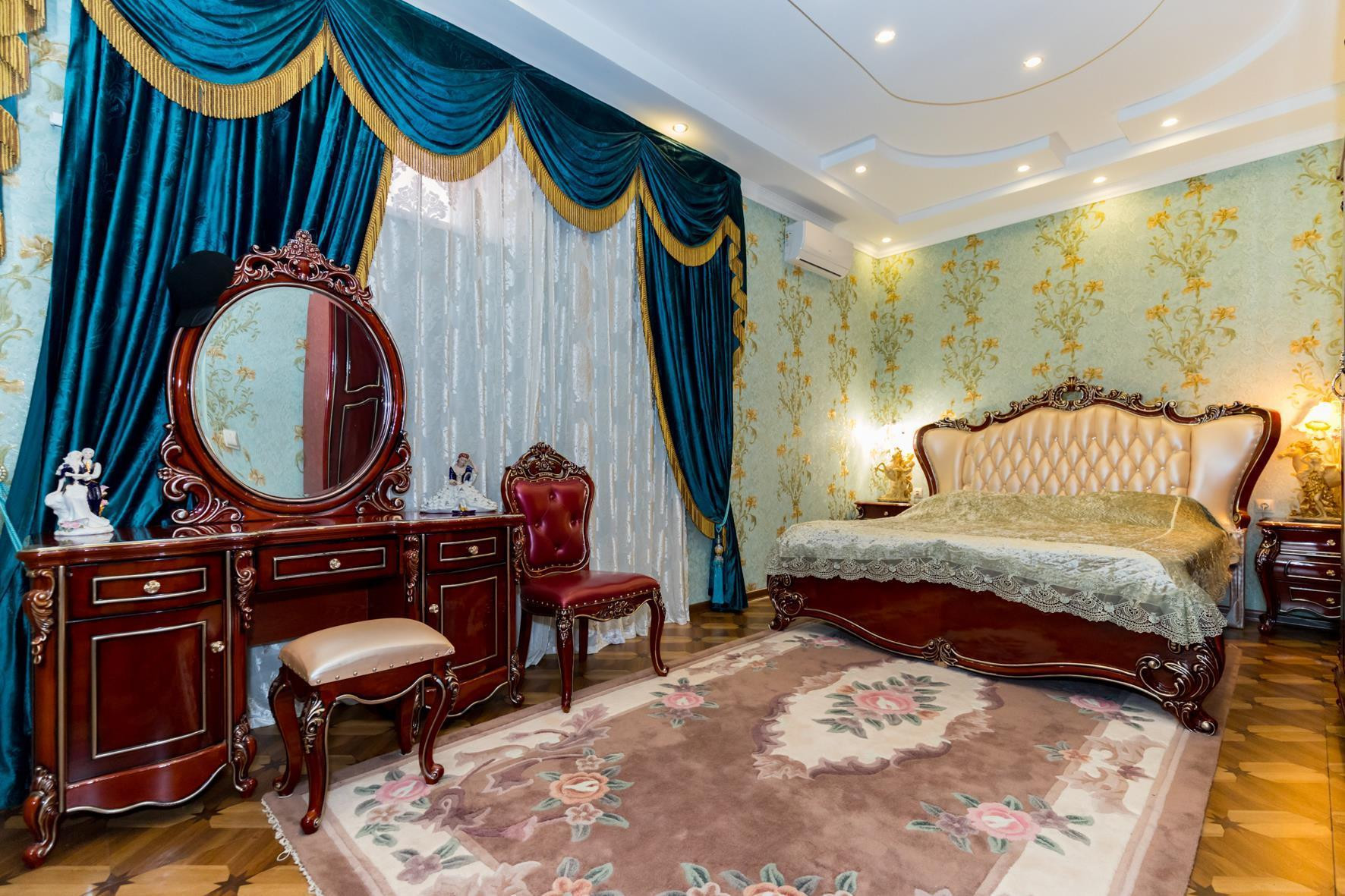 В доме выполнен шикарный дизайнерский ремонт, делали для себя, 6 спальных комнат, в доме остается абсолютно все. Можно заехать и жить. На территории помещается 2-3 машины и просторная зона отчуждения у дома для парковки гостевых машин