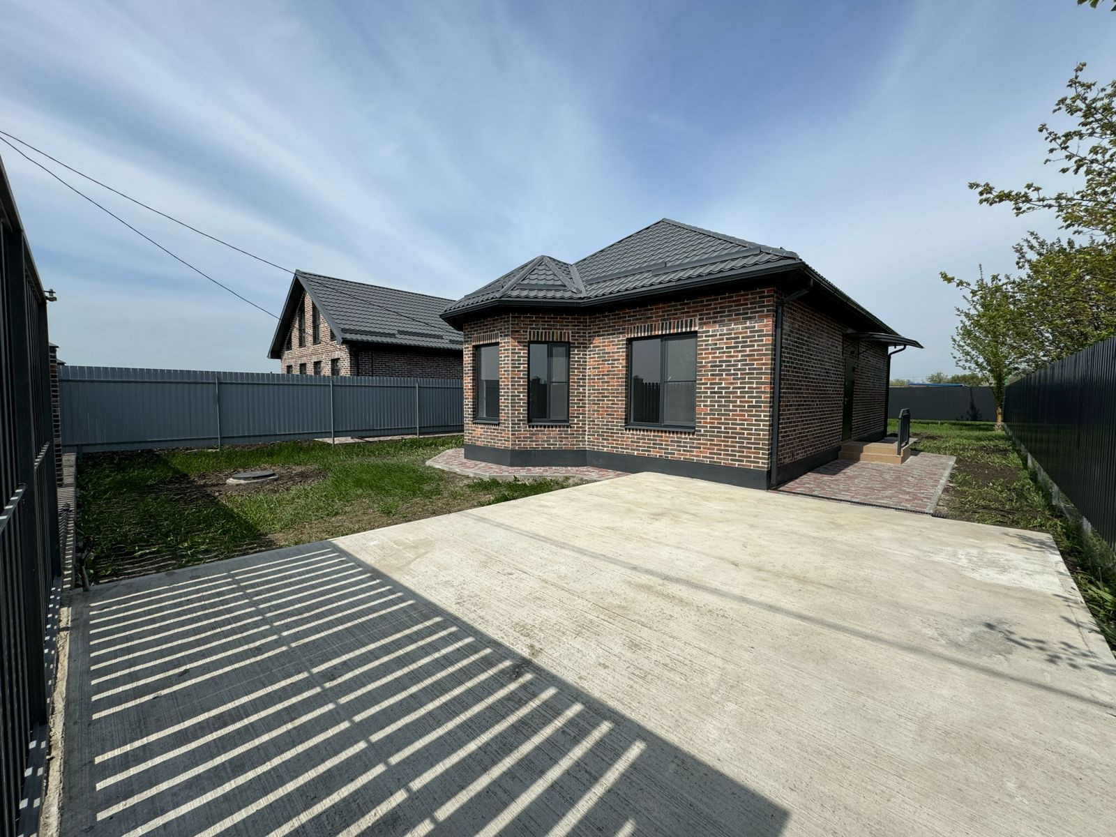 Строительство 3-4 месяца. Цена ПЧО-6’400’000₽ В стоимость входит: Предчистовая отделка, теплый пол везде кроме спален, в спальнях радиаторы отопления, разводка электрики/сантехники, электрокотел, во дворе забетонированное парковочное место, отмостка, дорожка к дому. Забор по периметру, фасадный забор с колонами и откатными воротами. Коммуникации: Свет 15кВт 3 фазы, септик 8 кубов переливной, скважина 35-40м. Цена с ремонтом: 7’400’000₽, в стоимость входит-стены отштукатурены, крашены; полы везде где теплый пол кафель, в спальнях ламинат. Натяжные потолки. Розетки, освещение. Сан узел-кафель, сан.техника, бойлер.