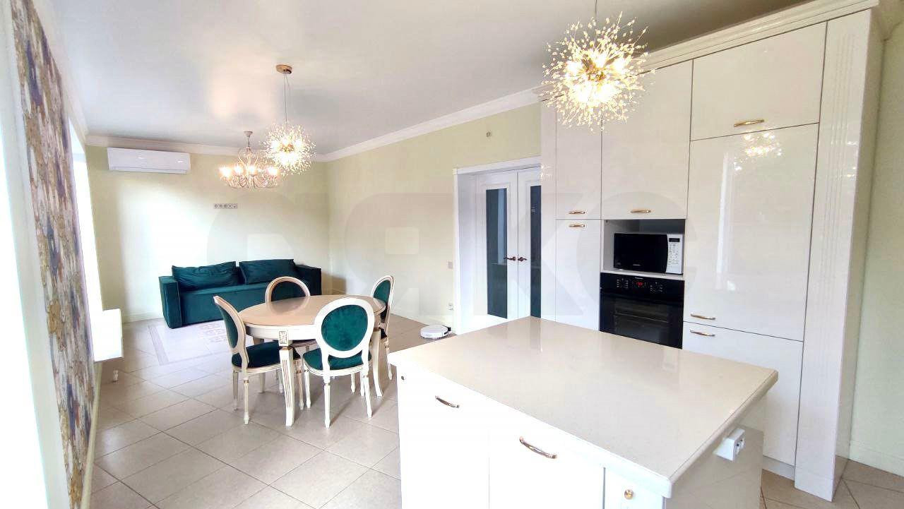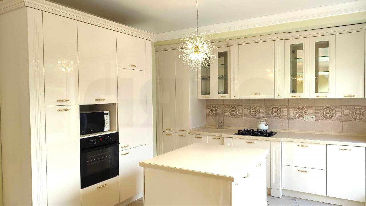 Просторная кухня-гостиная, сердце дома : кухонный гарнитур итальянского дизайна Sсаvоlini с каменной столешницей, литой раковиной, смесителем ВLАNСО и премиальной встроенной бытовой техникой Еlесtrоluх: газовая варочная панель, духовой шкаф, холодильник, посудомоечная машина. Сплит система. Отдельное удовольствие - это остров! Итальянский круглый обеденный стол станет притяжением всей семьи, при необходимости он раздвигается и за столом поместится даже большая компания. Обеденную зону украшает оригинальное пано от Vеrsасе. Так же в гостиной есть комфортный диван-кровать, выполненный в единой цветовой гамме со стульями. Также имеются панорамные окна с широкими подоконниками, на которых очень удобно сидеть, и выход на задний двор.