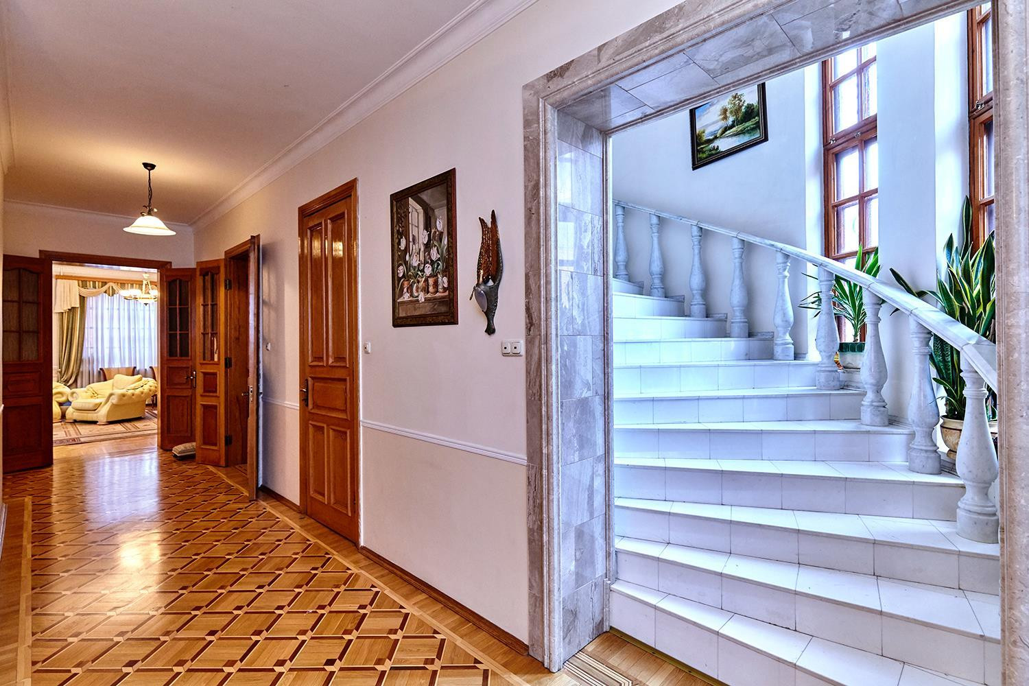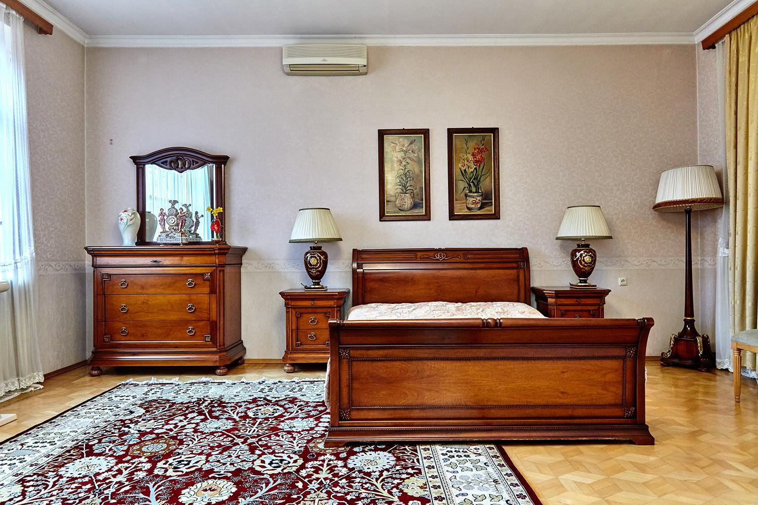 На втором этаже: 4 спальни, детская, кабинет, сан.узел (совместный), все комнаты изолированы. На первом этаже: каминный зал, гостиная, столовая, кухня, просторный хол, небольшая гардеробная, сан.узел (раздельный). Все двери (высота 3 м.) и окна выполнены из массива сосны. На территории участка фруктово-ягодный сад, многочисленные вечнозеленые деревья и кустарники, розарий. Основательный, светлый, ухоженный дом, до центра 10 минут. Рядом стадион ФК "Краснодар", 2 школы, несколько детских садов, развитая коммерческая инфраструктура. Спальный, тихий район для жизни.