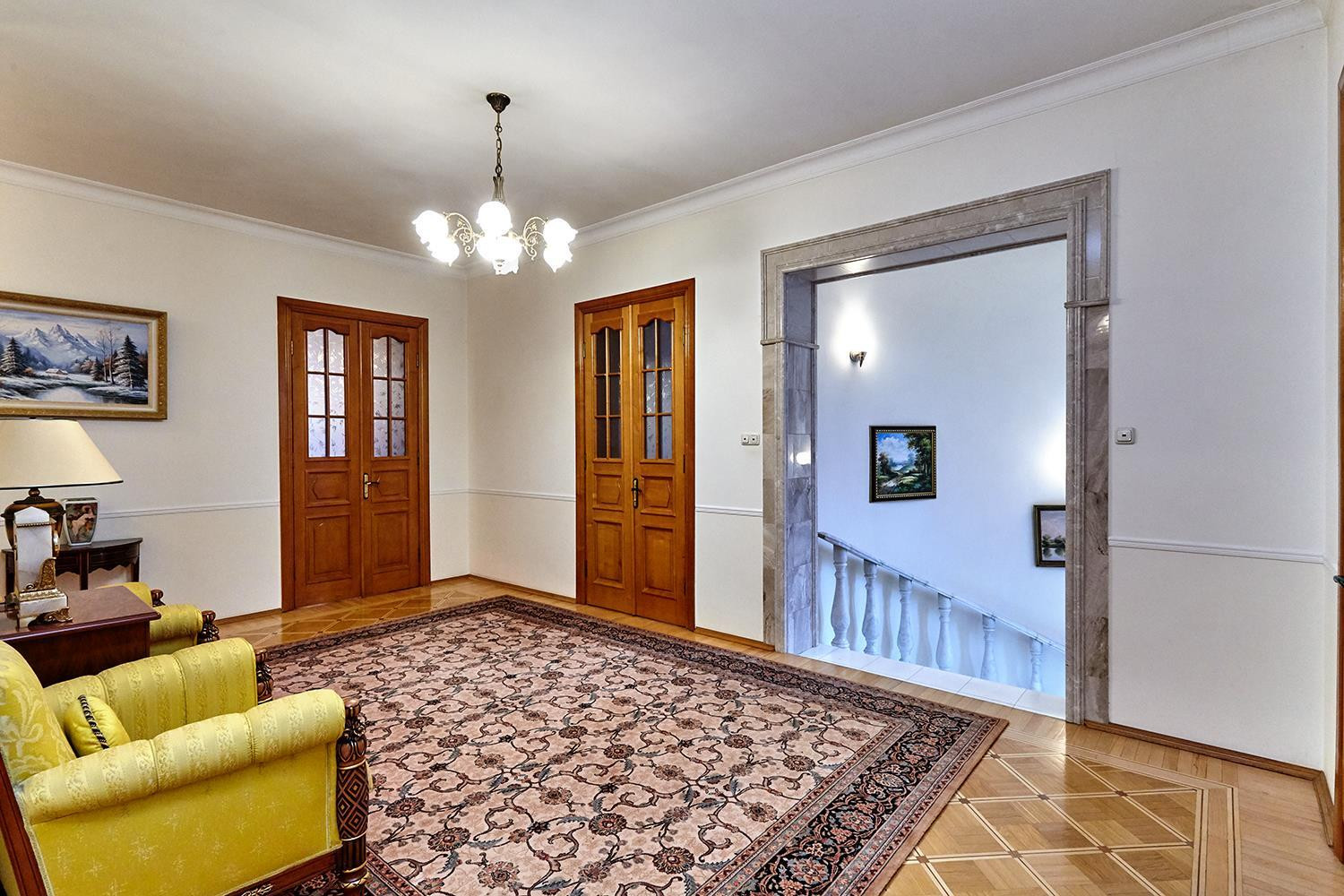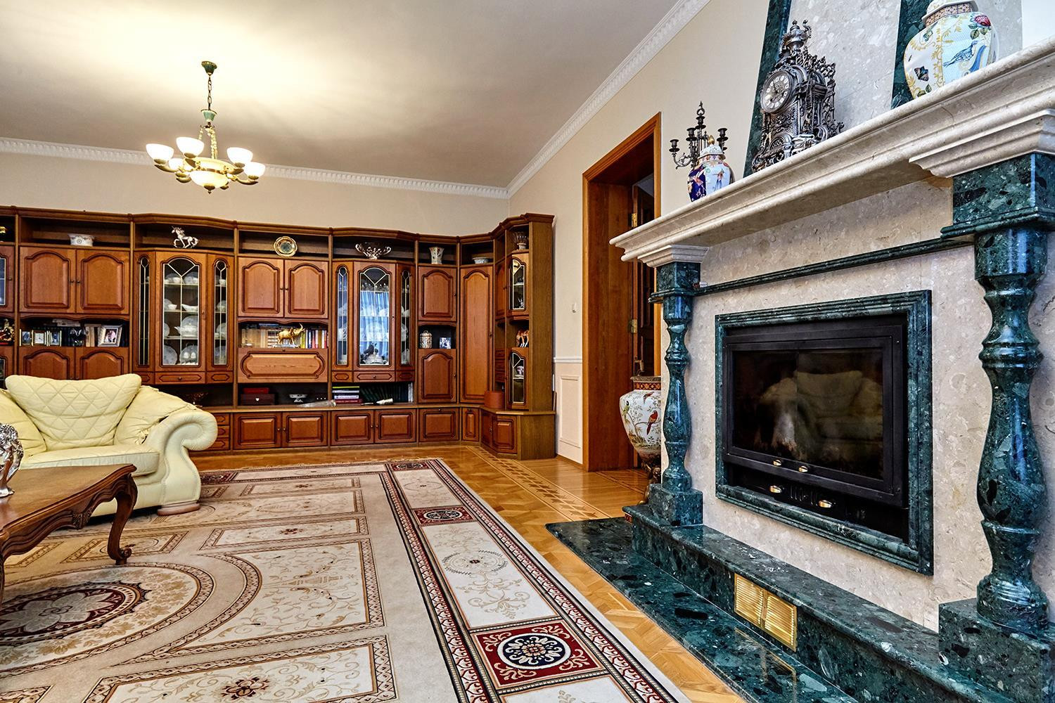 Продам просторный двухэтажный элитный дом на территории "Царское Цело". Участок 8 соток. Дом построен из точенного итальянского кирпича. Площадь дома 565 кв м., без учета полноценного отапливаемого цокольного этажа, в котором располагается хозяйственная зона: прачечная, кладовая, котельная, гараж на 4 автомобиля. Высота потолков 3,5 м. Натуральный паркет (использованы бук, дуб, красное дерево), в большом зале мраморный камин.