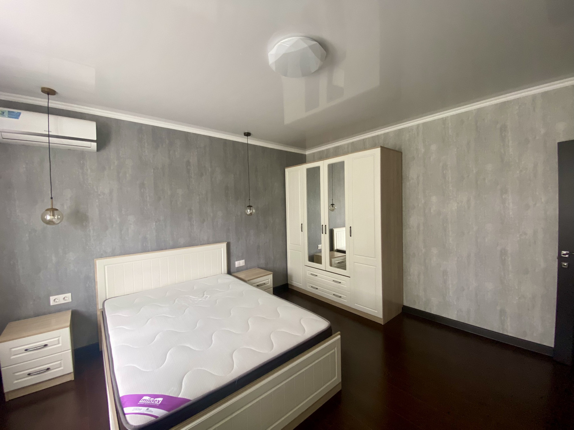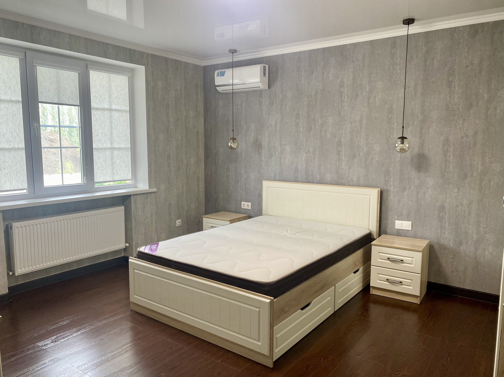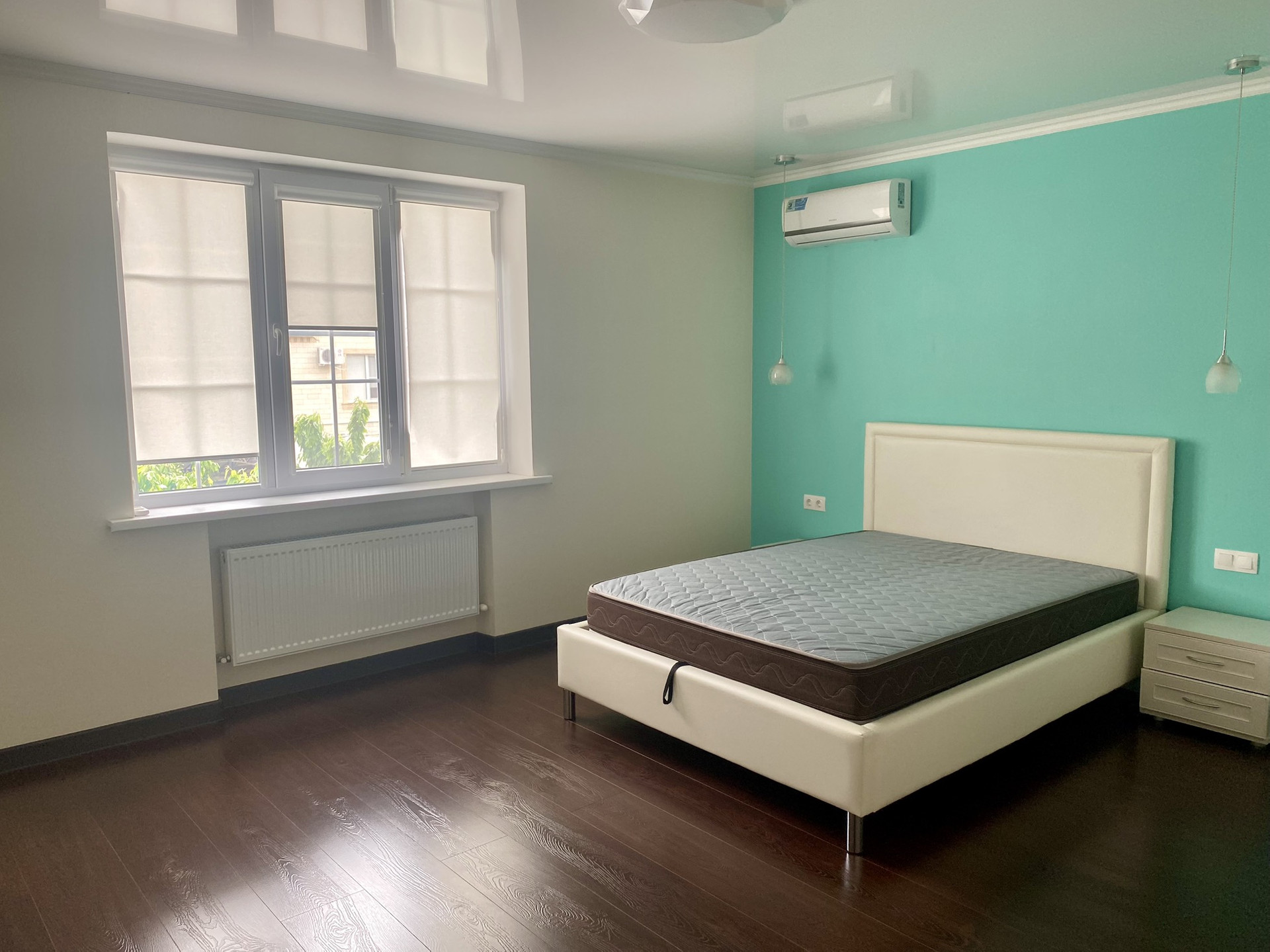 На 1 этаже расположены прихожая, котельная, кухня-гостиная, веранда с выходом во внутренний двор, с/у (унитаз, душевая кабина), спальня, высота потолков 3.1 м. На 2 этаже - 3 спальни, просторный холл, с/у (унитаз, ванная джакузи), высота потолков 3.1 м. Двери межкомнатные – массив дерева. Лестница монолитная, отделка натур. деревом. Пол – ламинат. Обои итальянские моющиеся в нейтральной световой гамме. Котёл газовый двухконтурный. Радиаторы алюминиевые. Сплит системы в каждой комнате и на кухне.
