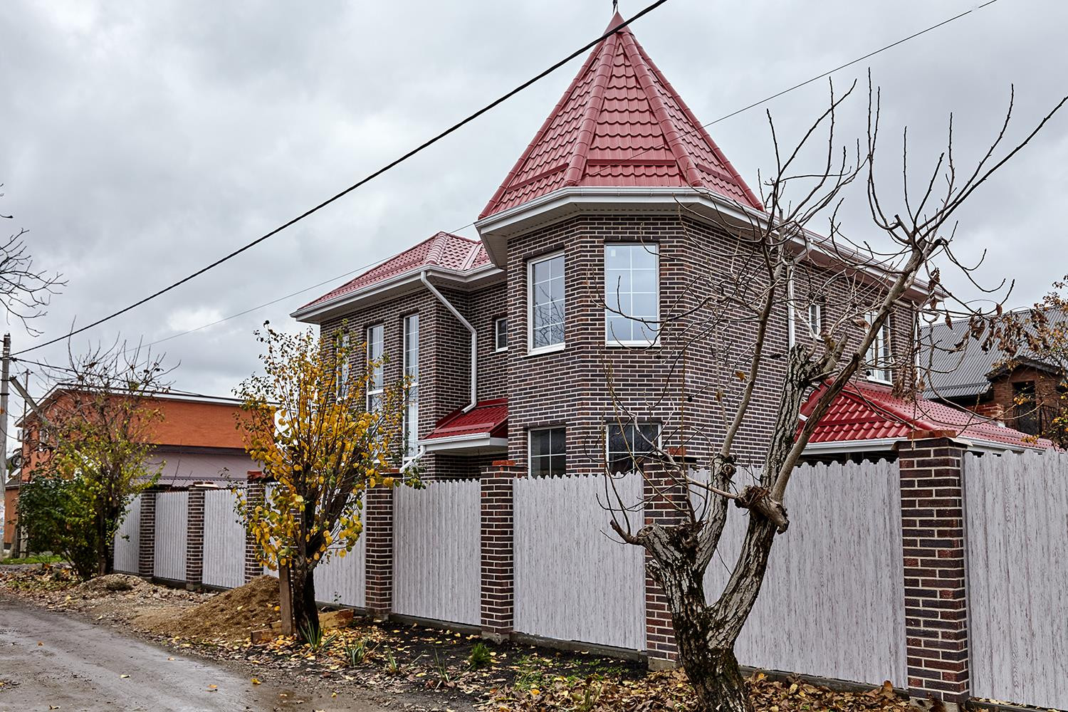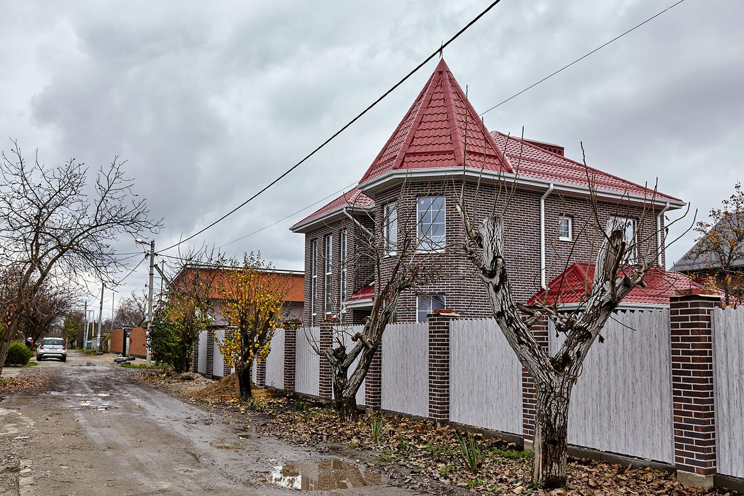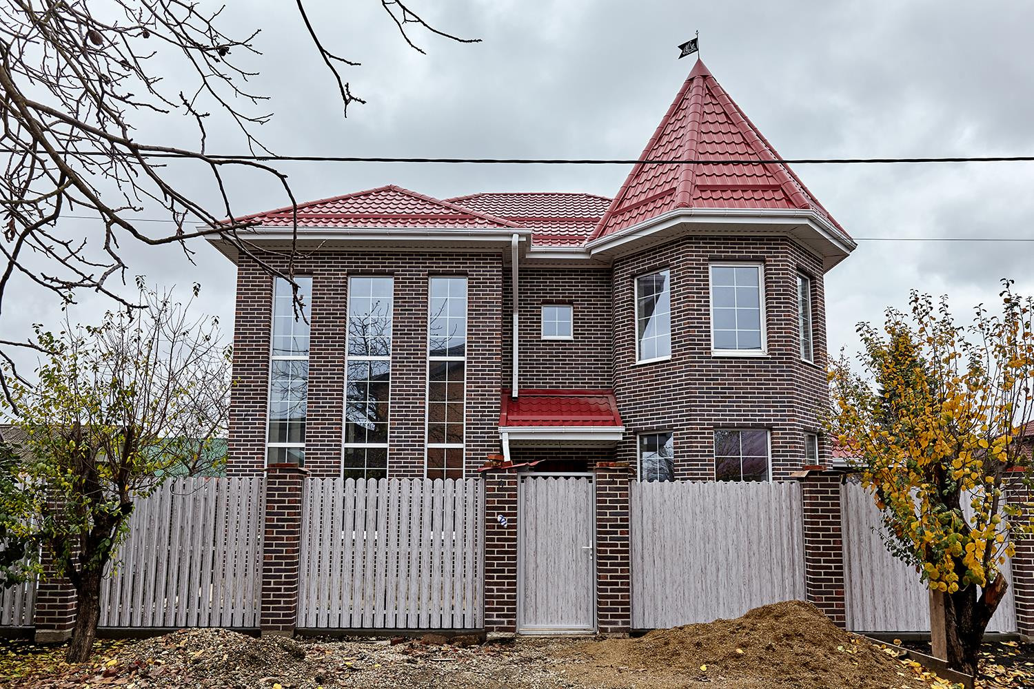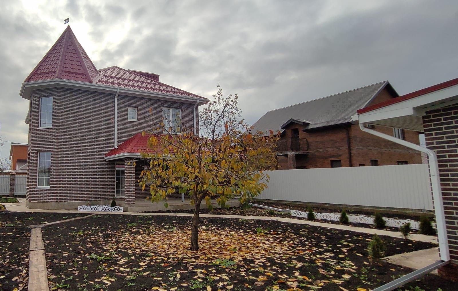 Новый полностью кирпичный дом на большом угловом участке, дом расположен на участке очень грамотно, с одной стороны вход в большой двор и с другой стороны отдельно въезд для автомобилей. Во дворе баня, место под бассейн, зона барбекю.