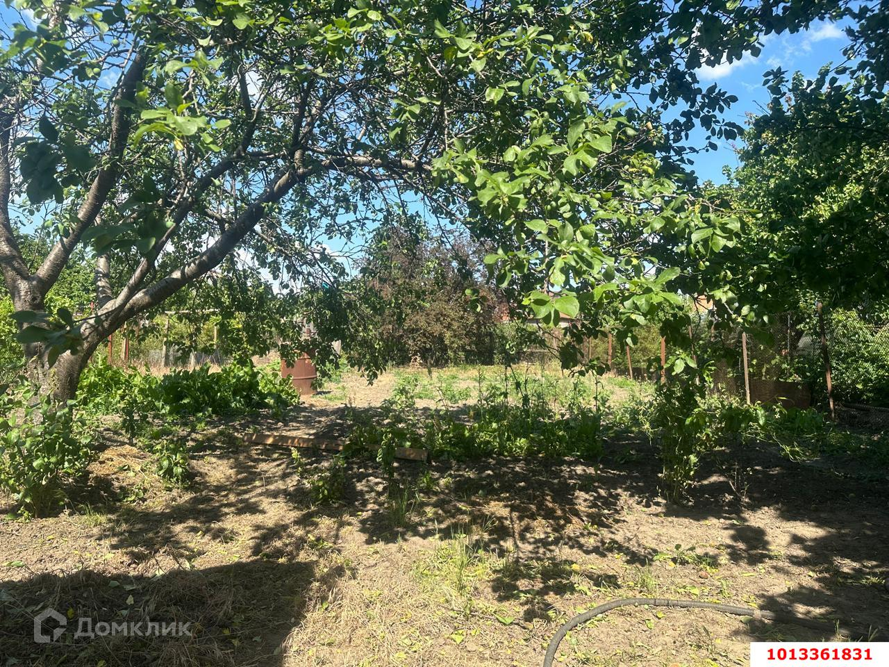 На участке, закрытая беседка, плодовые деревья, просторный двор.