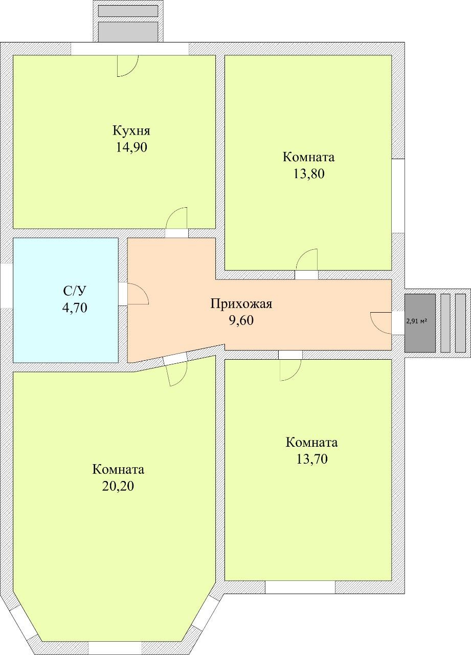 Общая площадь 77 м2