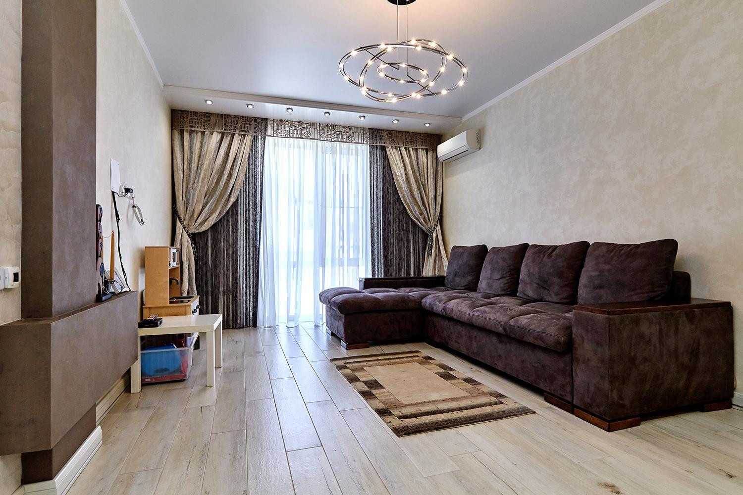 Этот шикарный дом - идеальное сочетание комфорта, стиля и функциональности. На первом этаже вас ждет холл, просторная кухня-столовая с выходом в зону барбекю (камин и вторая кухня), уютная гостиная, современный санузел (16 м²) и застеклённая веранда. Техника в доме: Bosch, Mille, Gorenje. Теплые полы по всему первому этажу, включая зону барбекю и веранду, обеспечивают комфорт в любое время года. Интерьер выполнен с использованием высококачественных материалов: кафель производства Италии, Испании, декоративная венецианская штукатурка, мрамор на всех подоконниках. При изготовлении лестницы использован был ясень с кованными элементами. Двери, плинтусы, пол, мебель во всем доме — выполнены из ясеня. Люстры привезены из Италии под заказ.