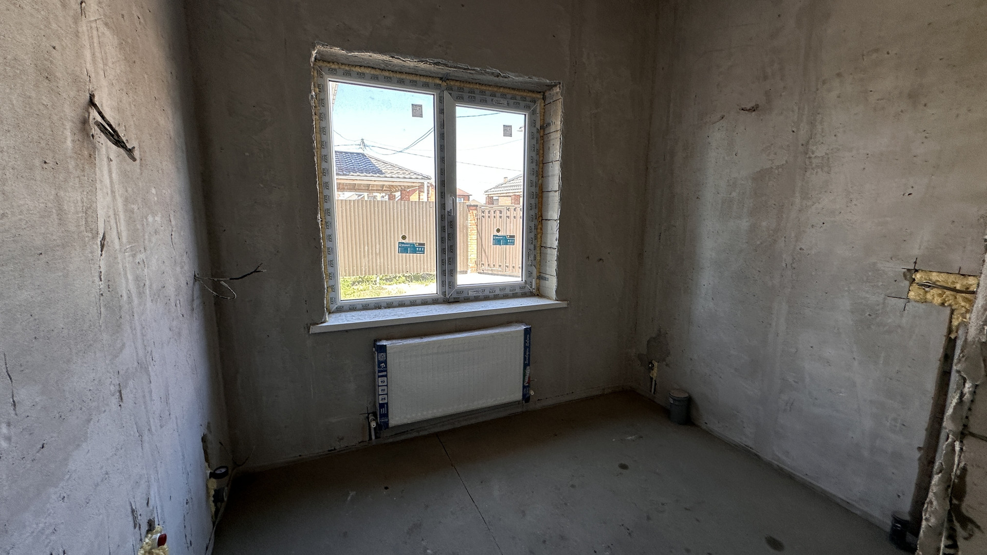 Коттедж — в предчистовой отделке: стяжка пола, стены оштукатурены, разводка электричества, сантехнического оборудования и отопления, двухконтурный котел, теплые полы — в местах общего пользования, радиаторы отопления.