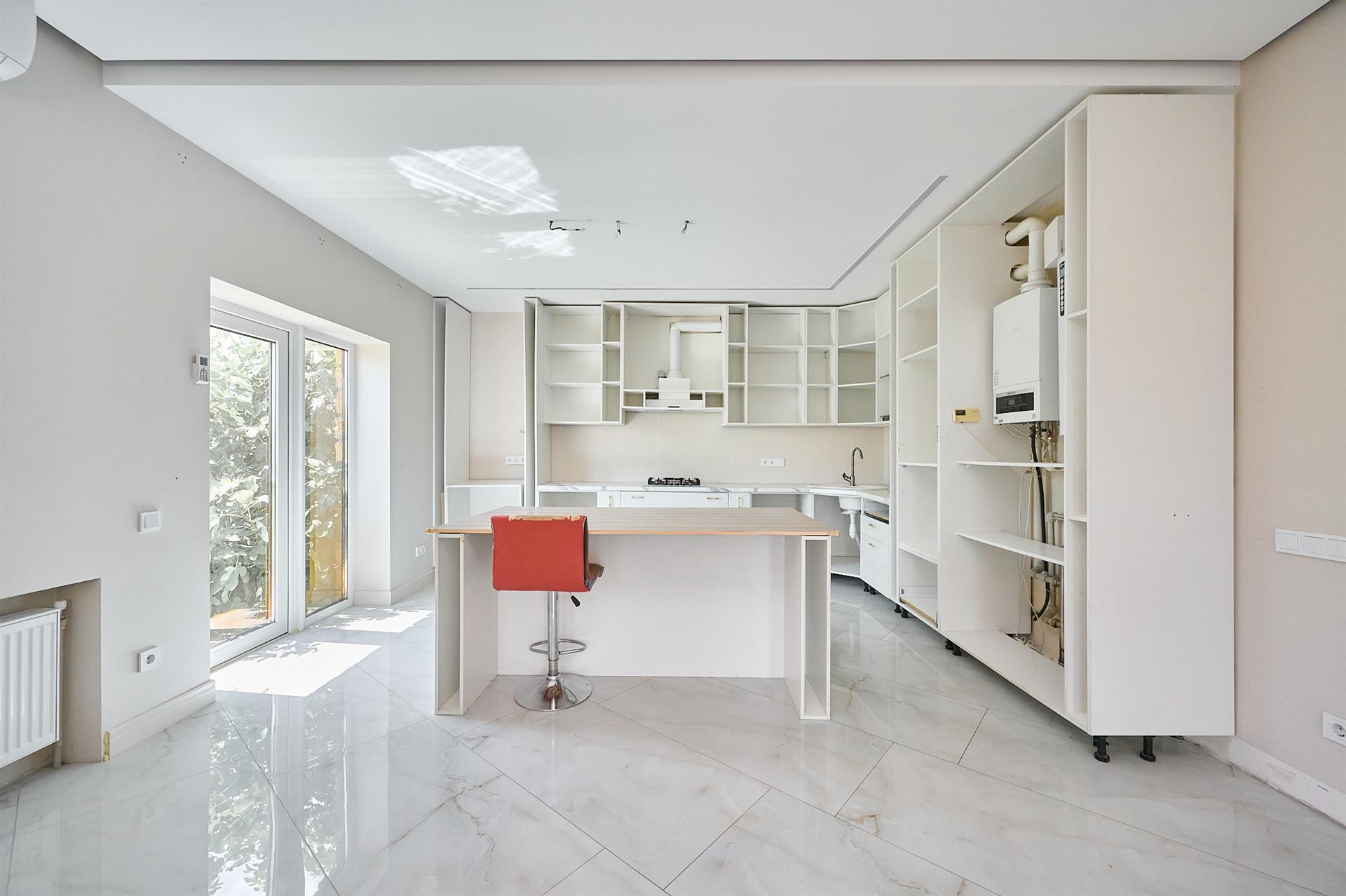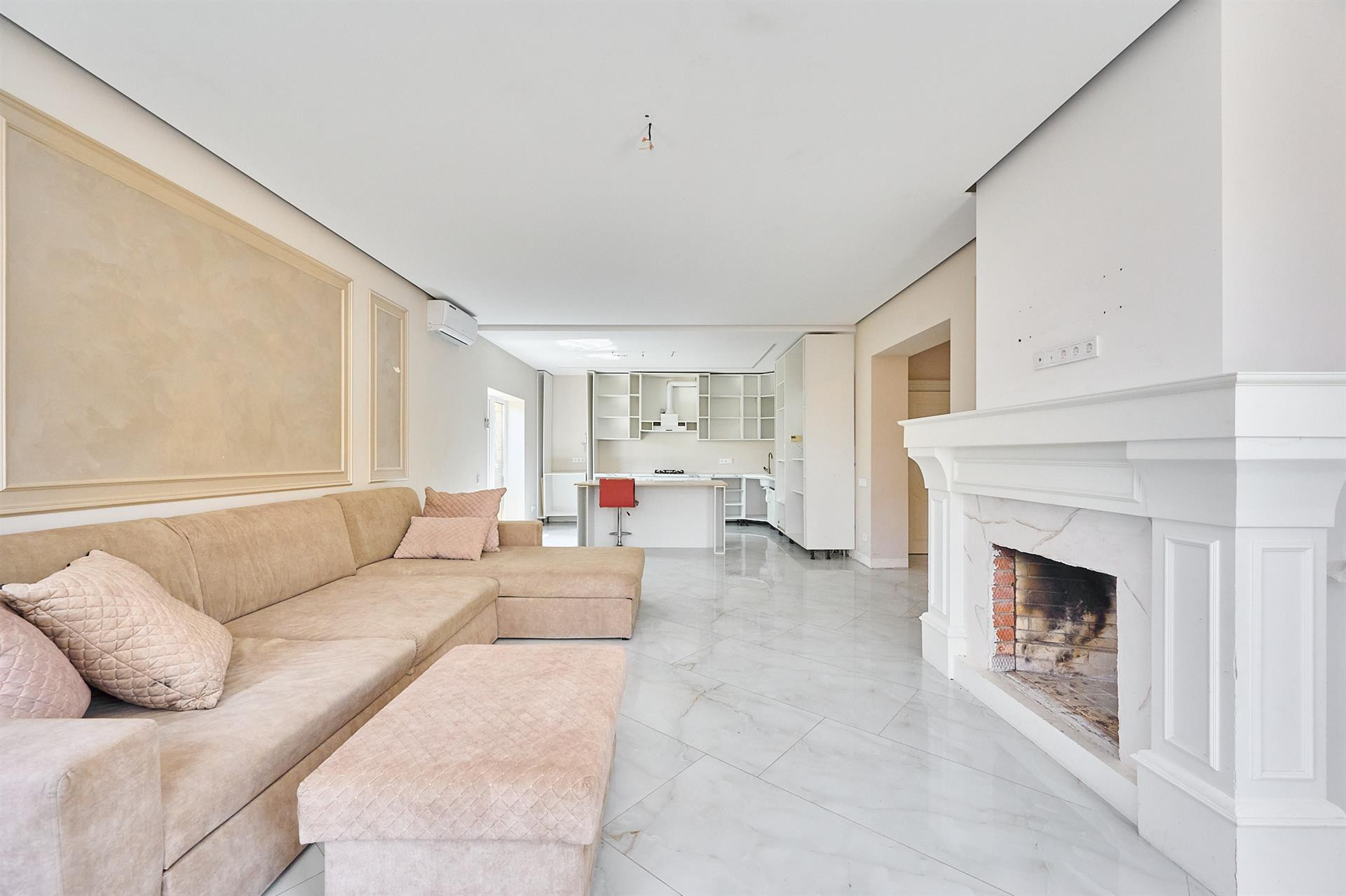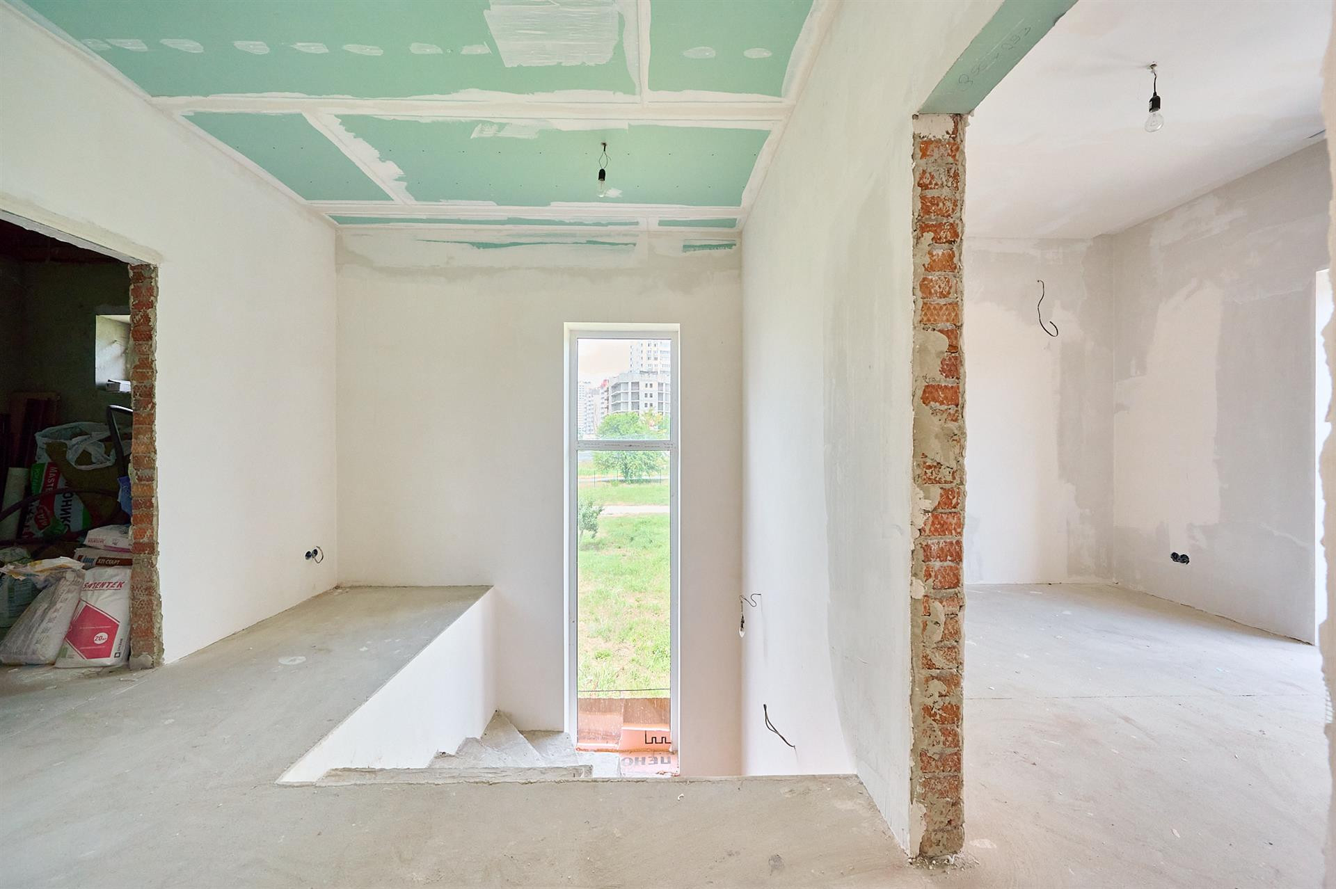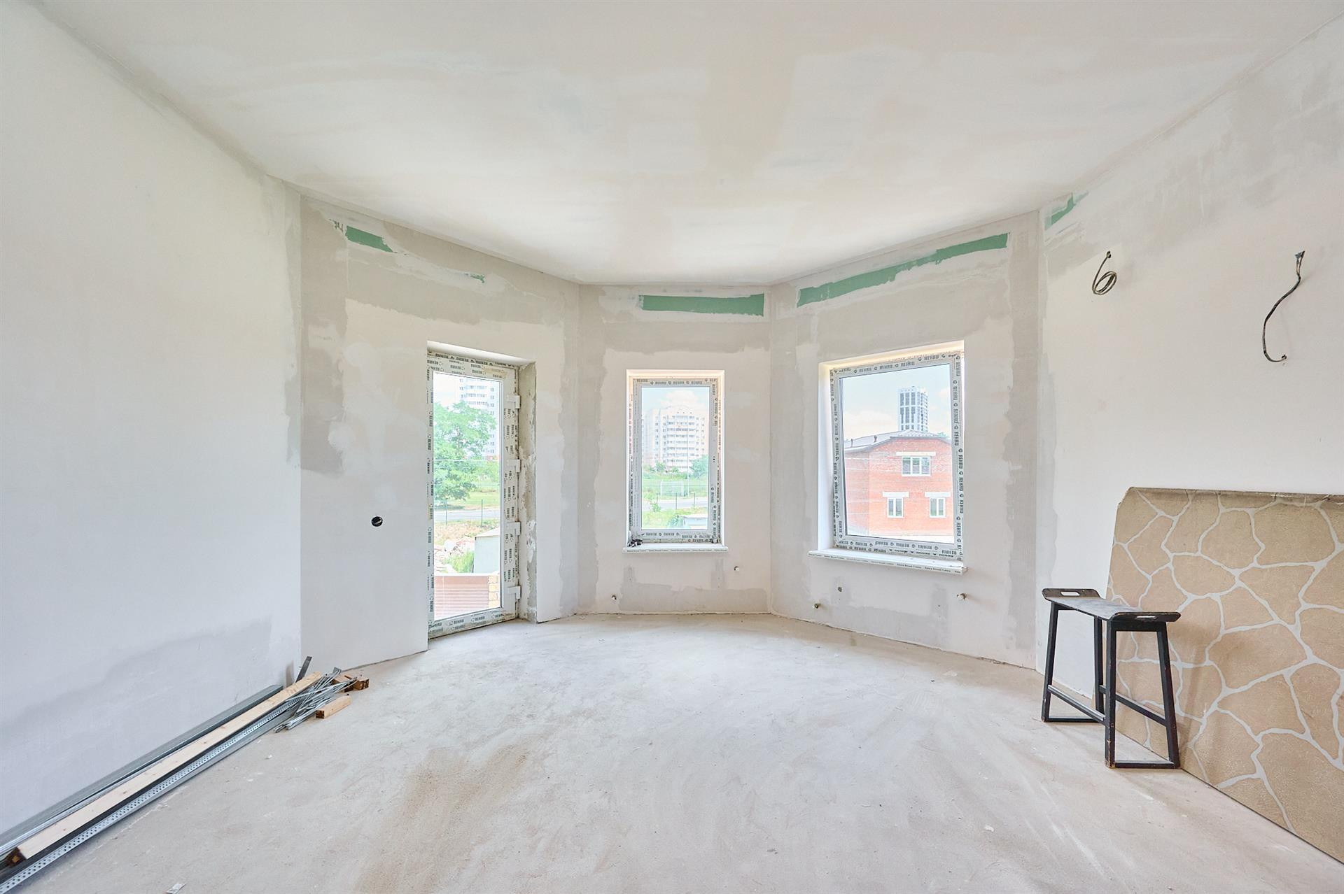 1 этаж с ремонтом, есть комната, кухня- гостиная и санузел с душевой.