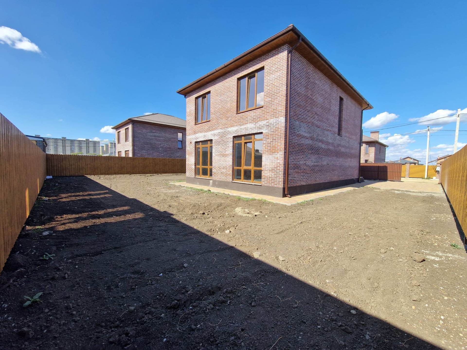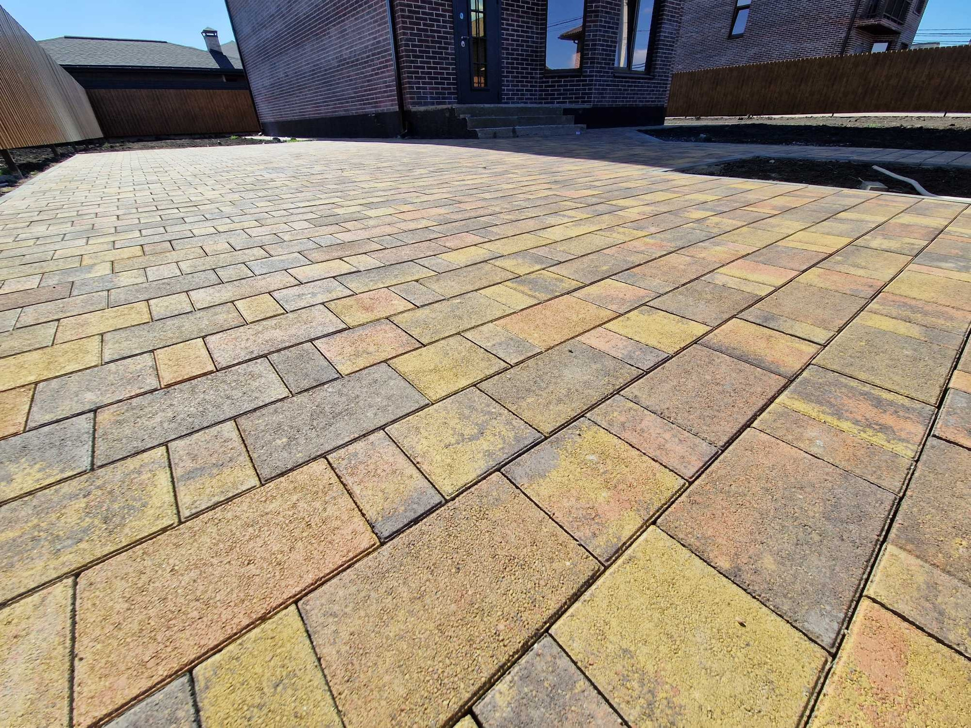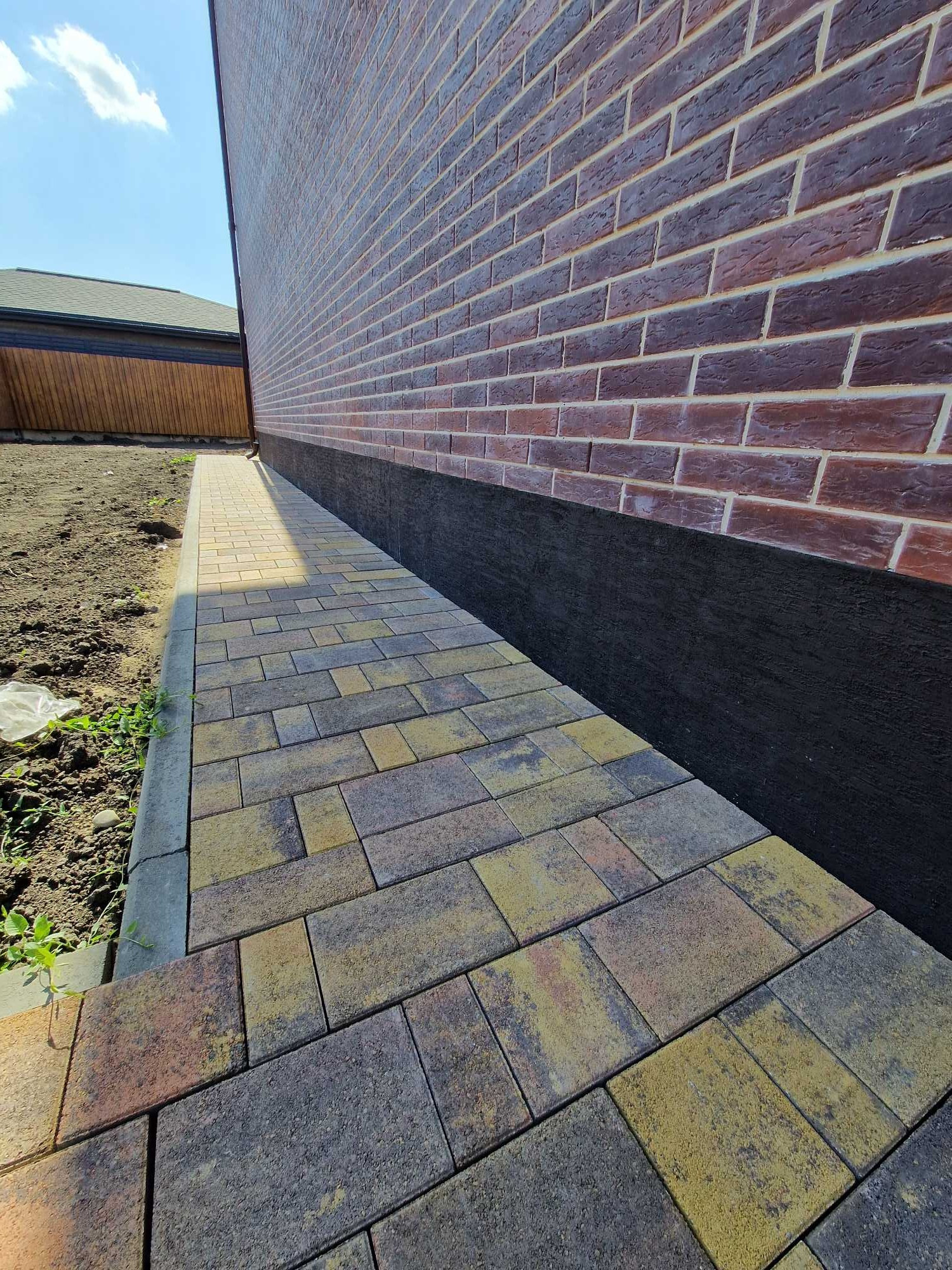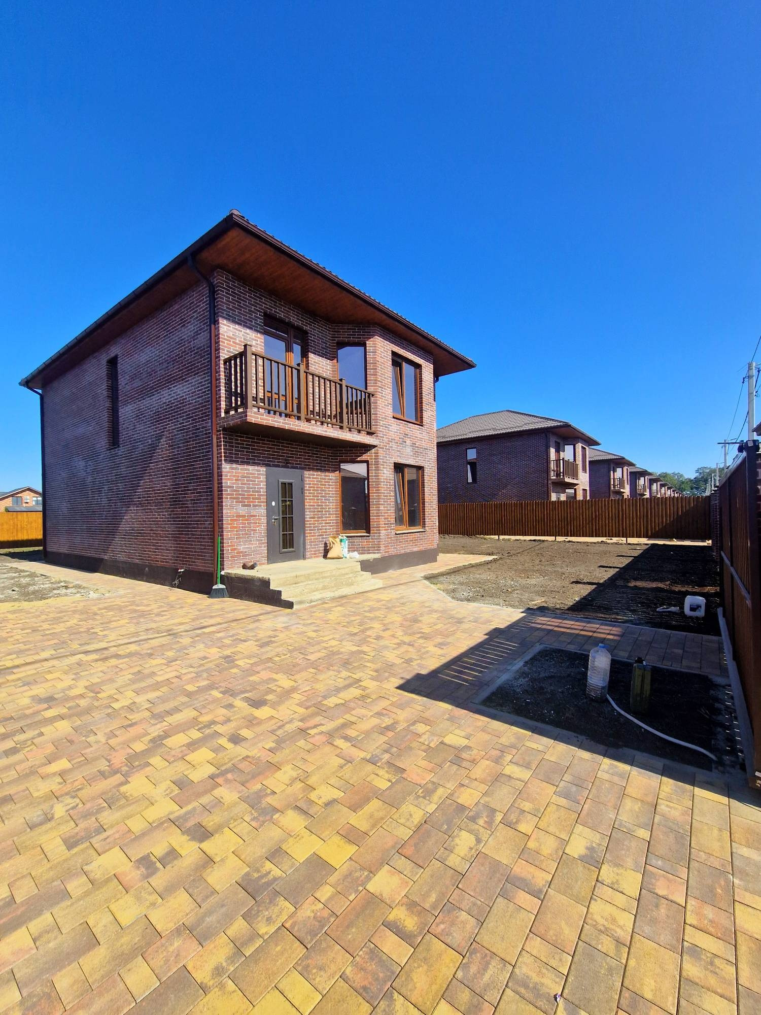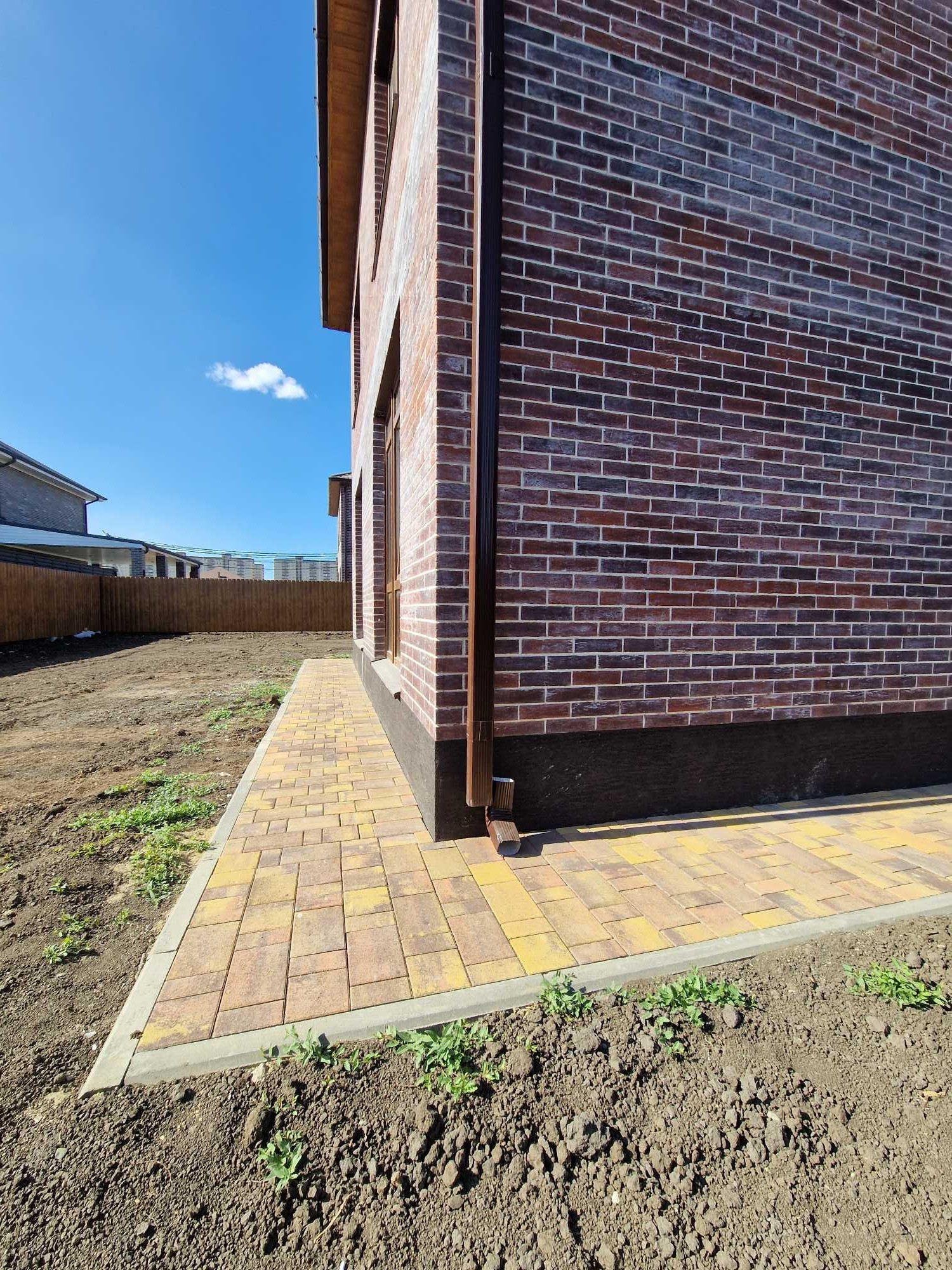 - Парковочные места и отмостка дома выложены тротуарной плиткой.