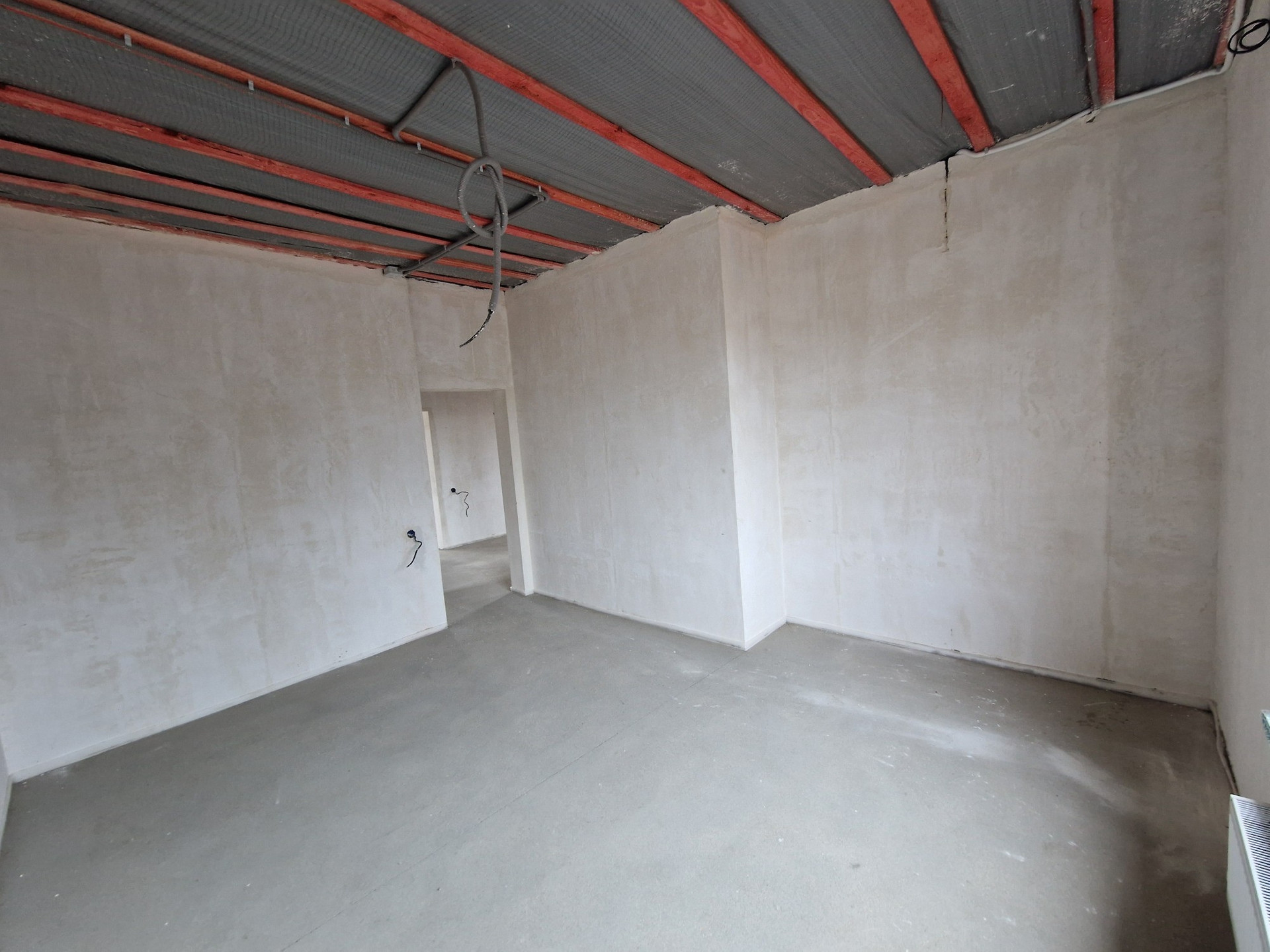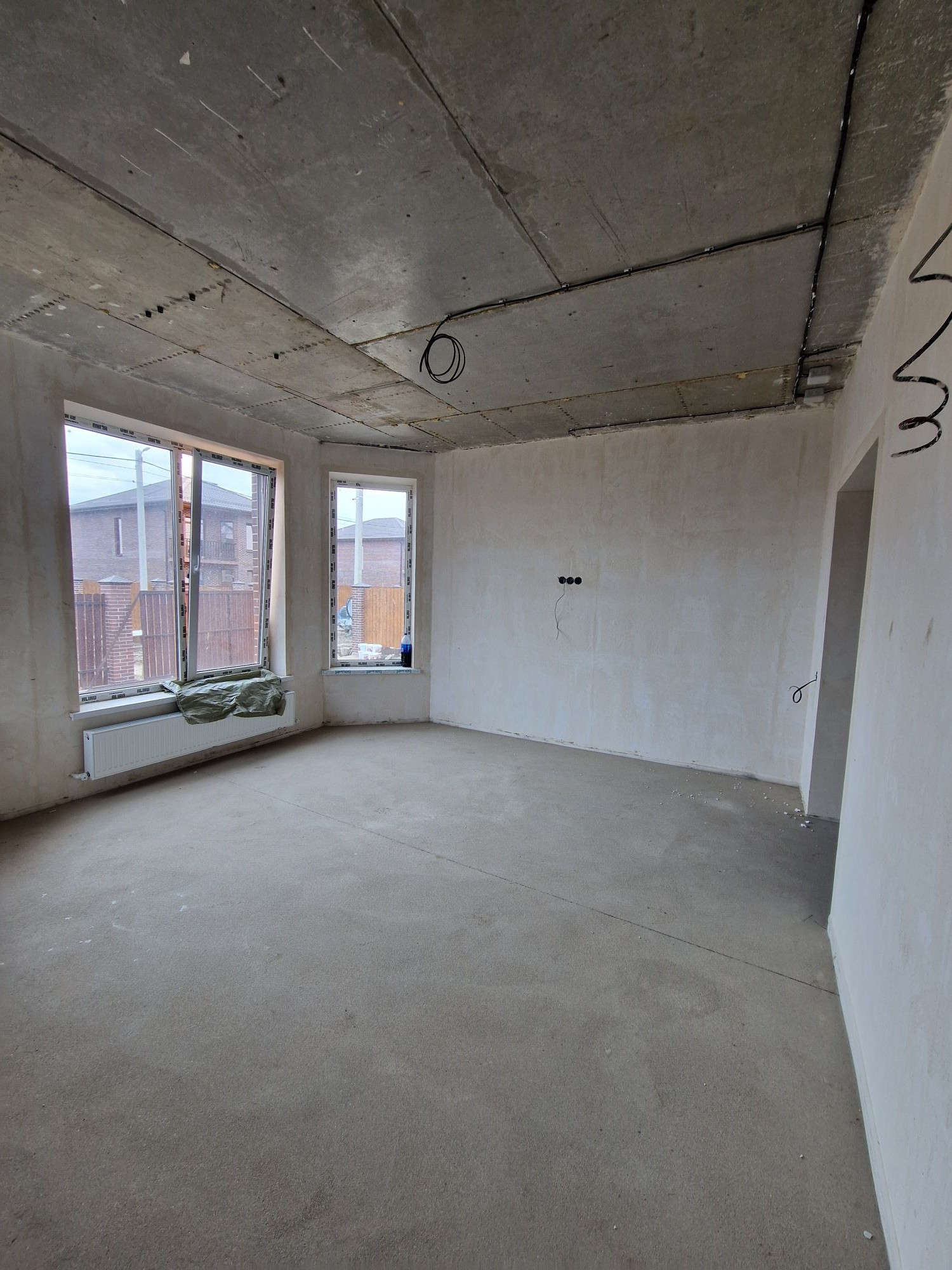 - Выполнена стяжка пола.