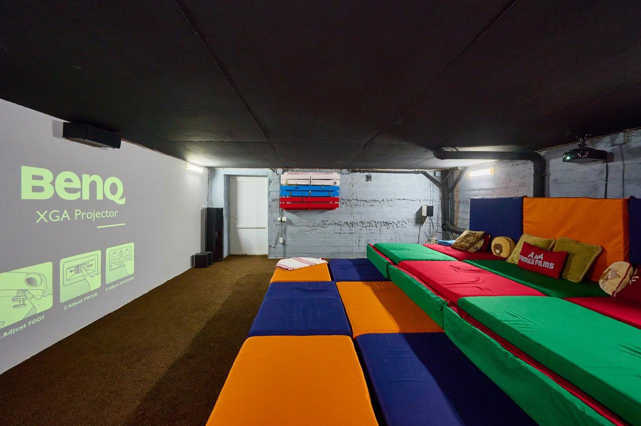 В цоколе расположены зоны хранения разных температурных режимов, а также свой кинотеатр.