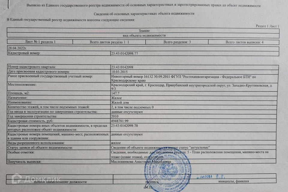 2-этажный дом, 147.7 м2, на продажу в Краснодаре, Западно-Кругликовская улица, 9/3