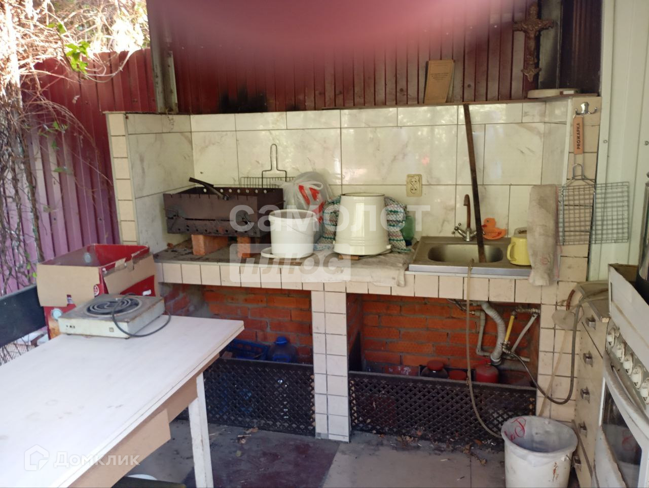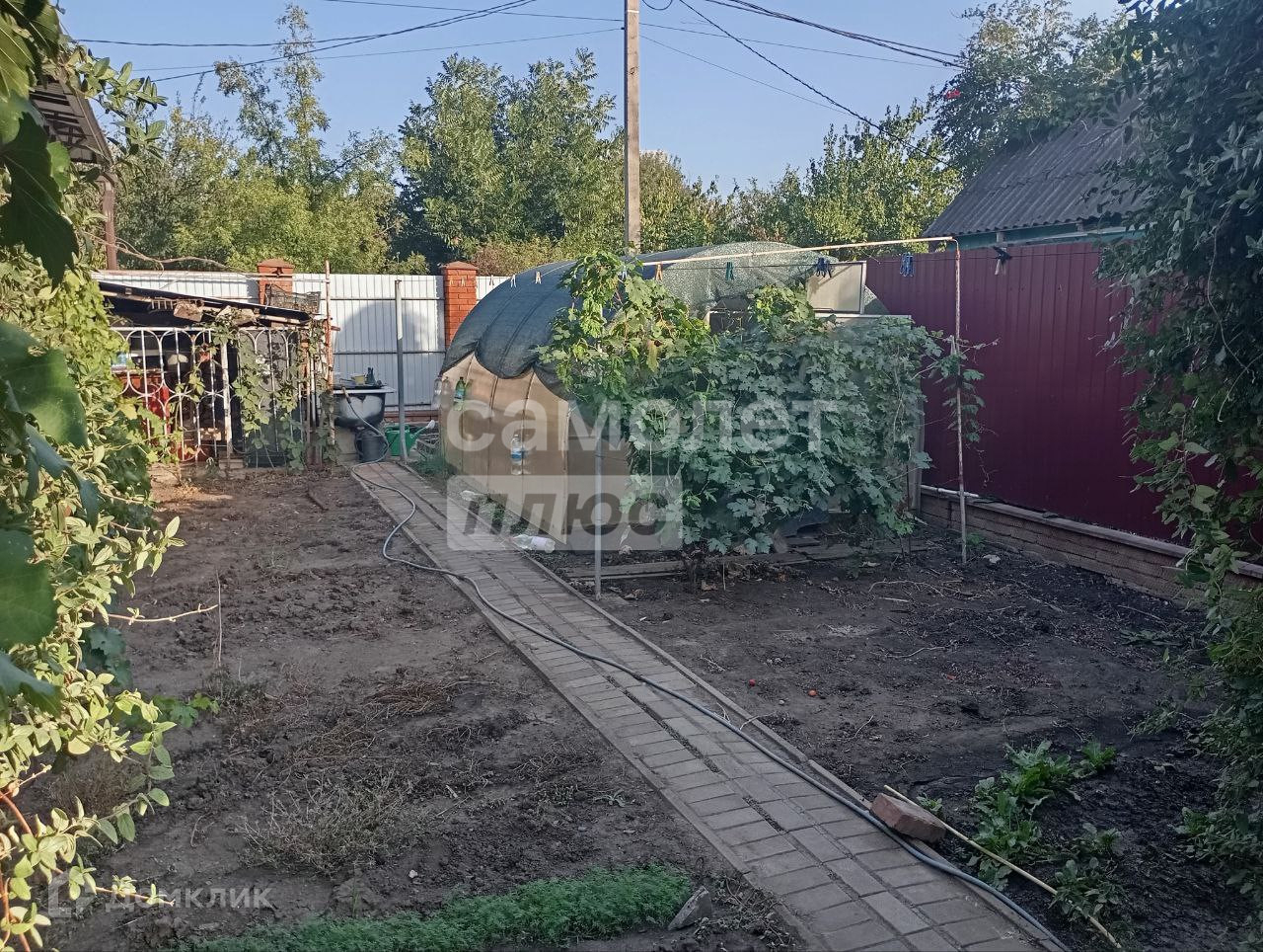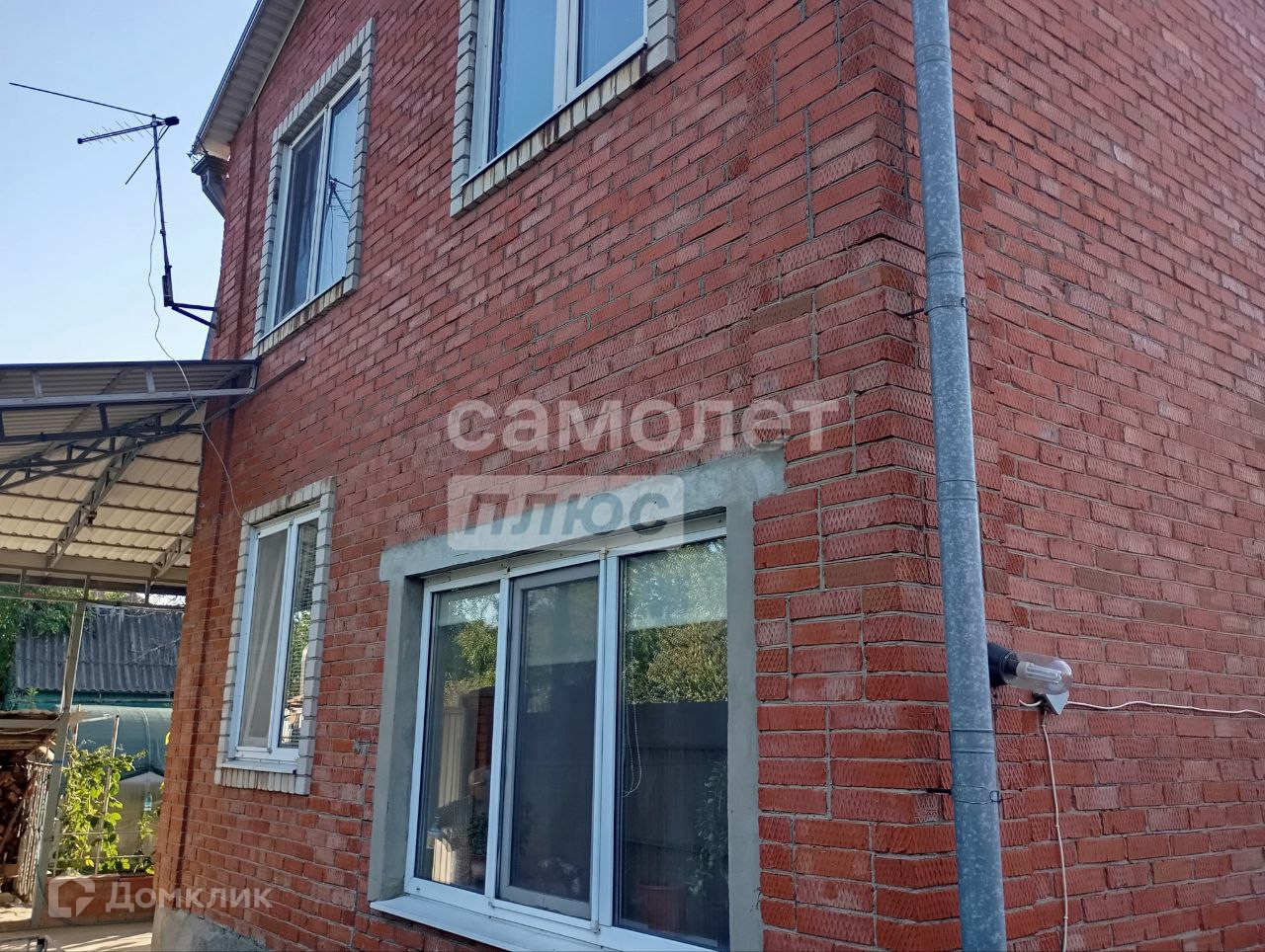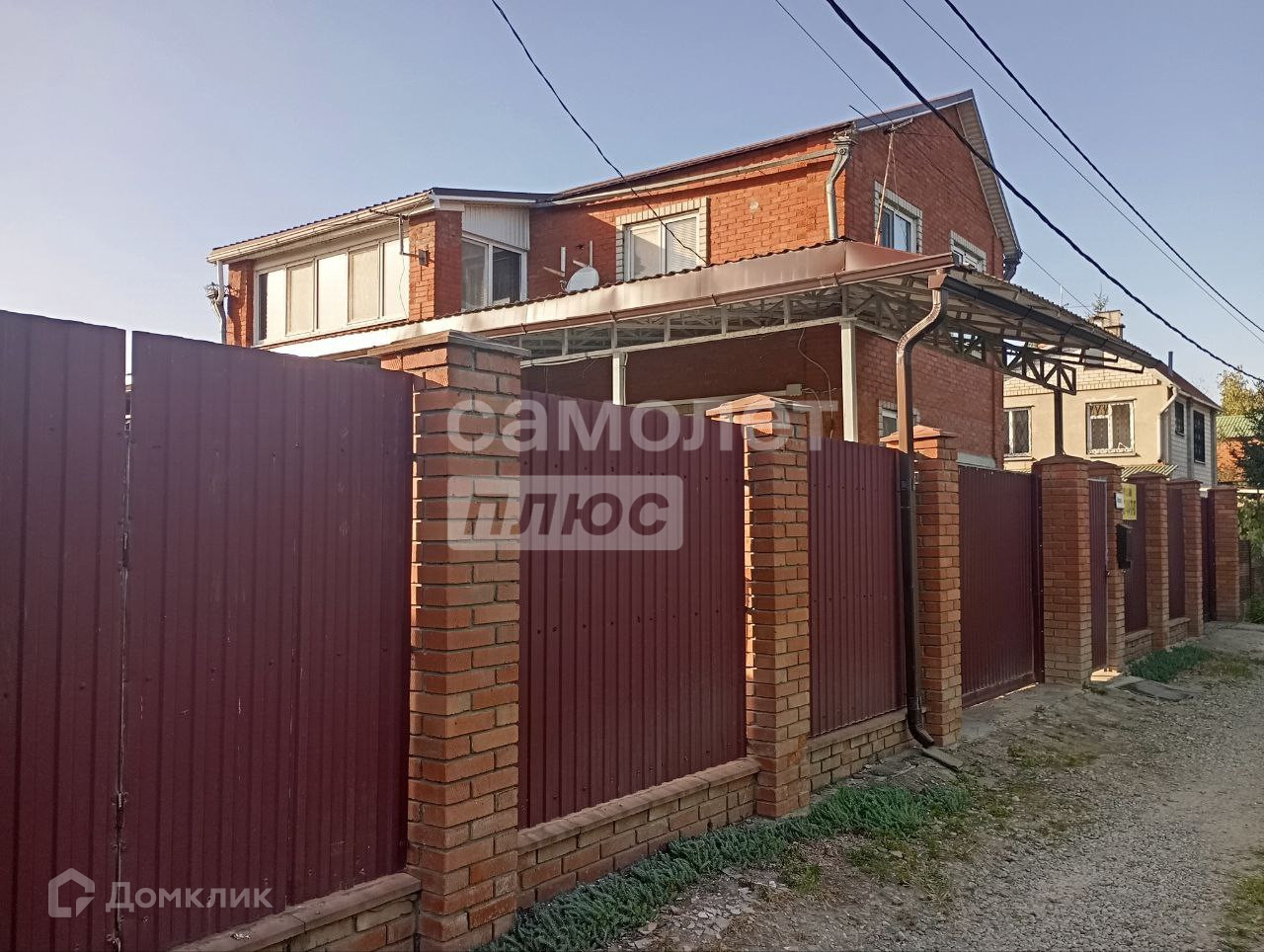 Придомовая территория облагорожена: оборудована зона барбекю, установлен навес по всему периметру, а также забор из металлического профиля с откатными воротами. Забетонированное парковочное место позволяет разместить три автомобиля.