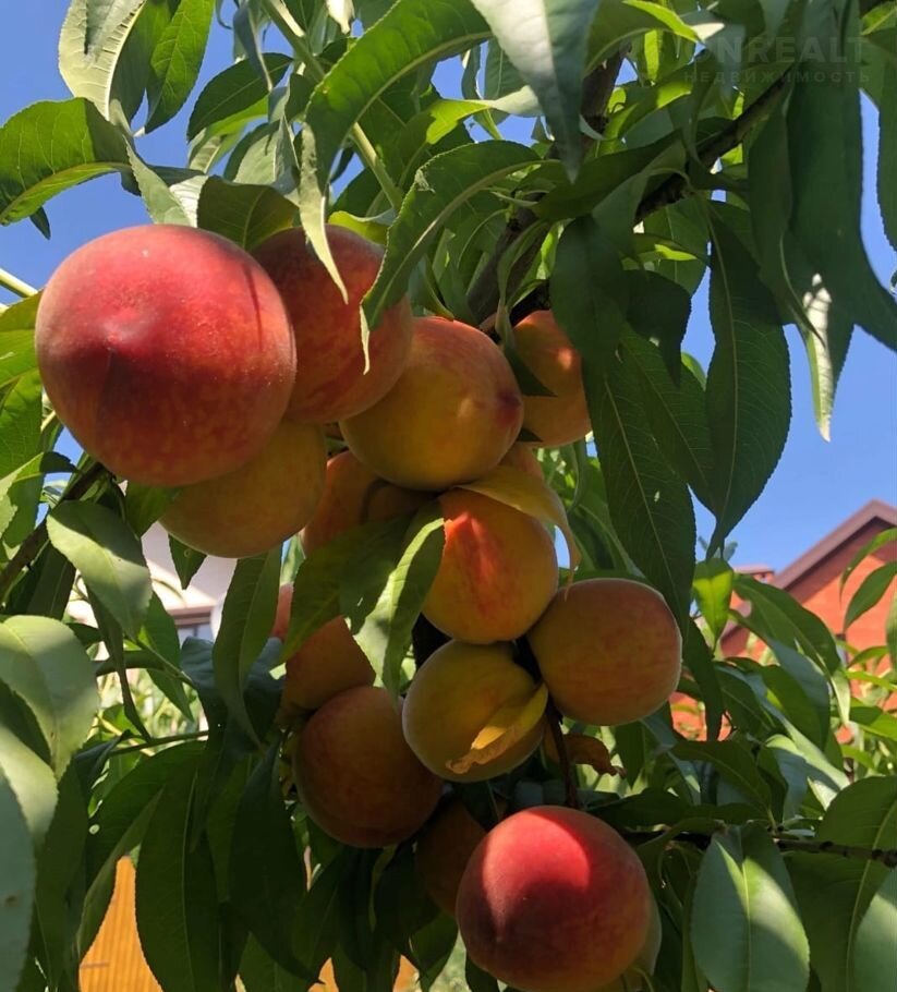 На участке фруктовый сад (плодоносящий), виноградник и розарий, газон по всей территории. Парковка на 4 авто. Придомовая территория большая. К дому ведет асфальтированная дорога.