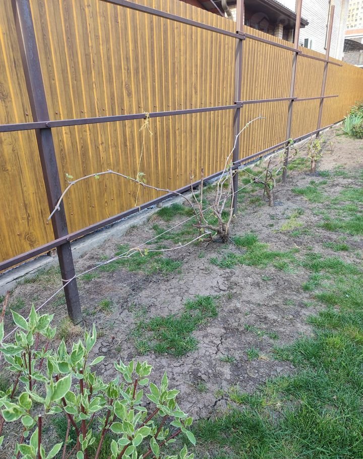Забор по фасаду высокий кирпичный, двор металлопрофиль.